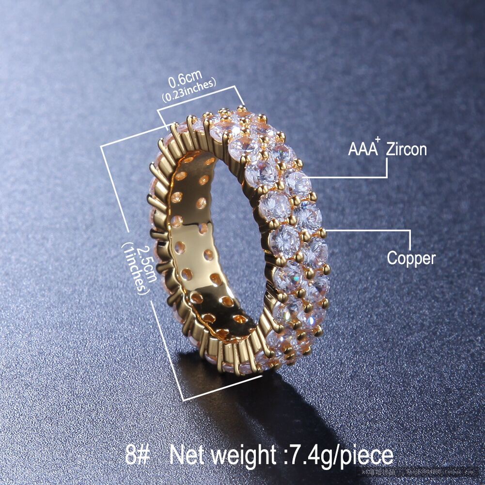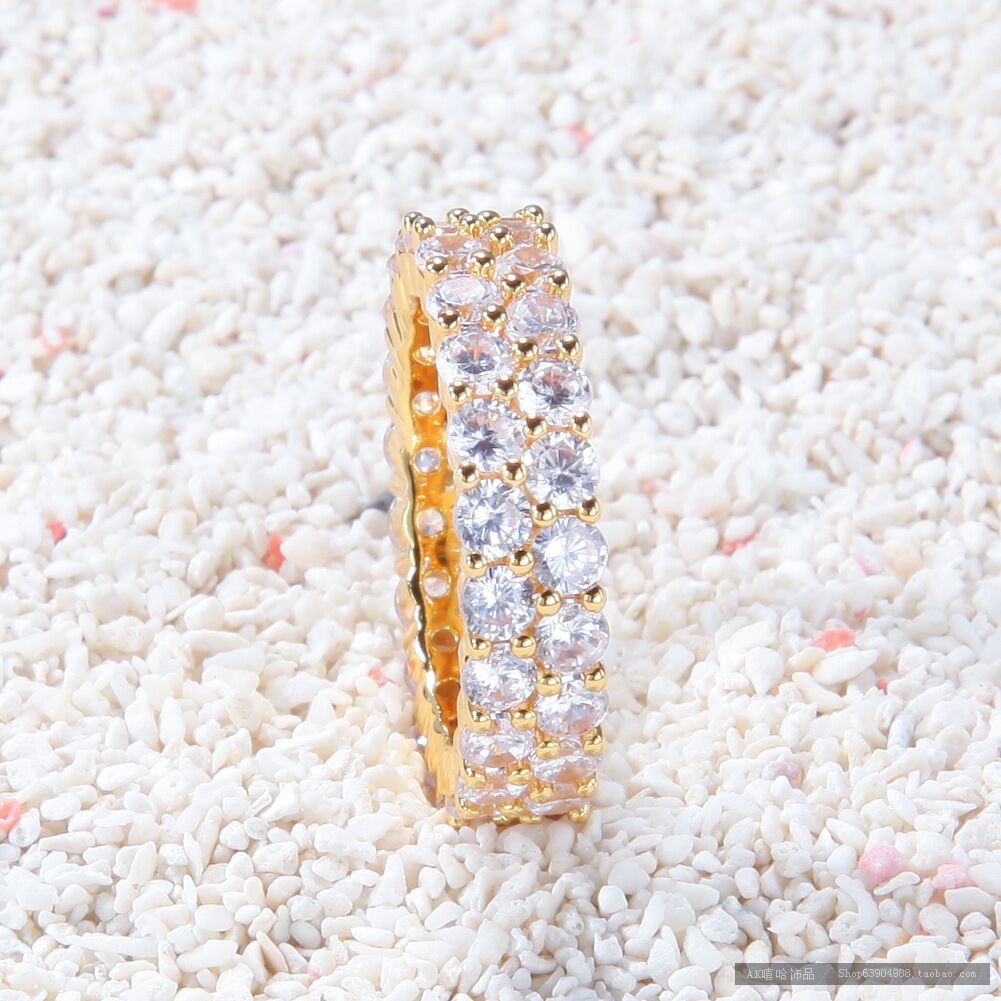 欧美潮流时尚双排锆石戒指男女对戒情侣饰品夜店戒指晚会酒会配饰