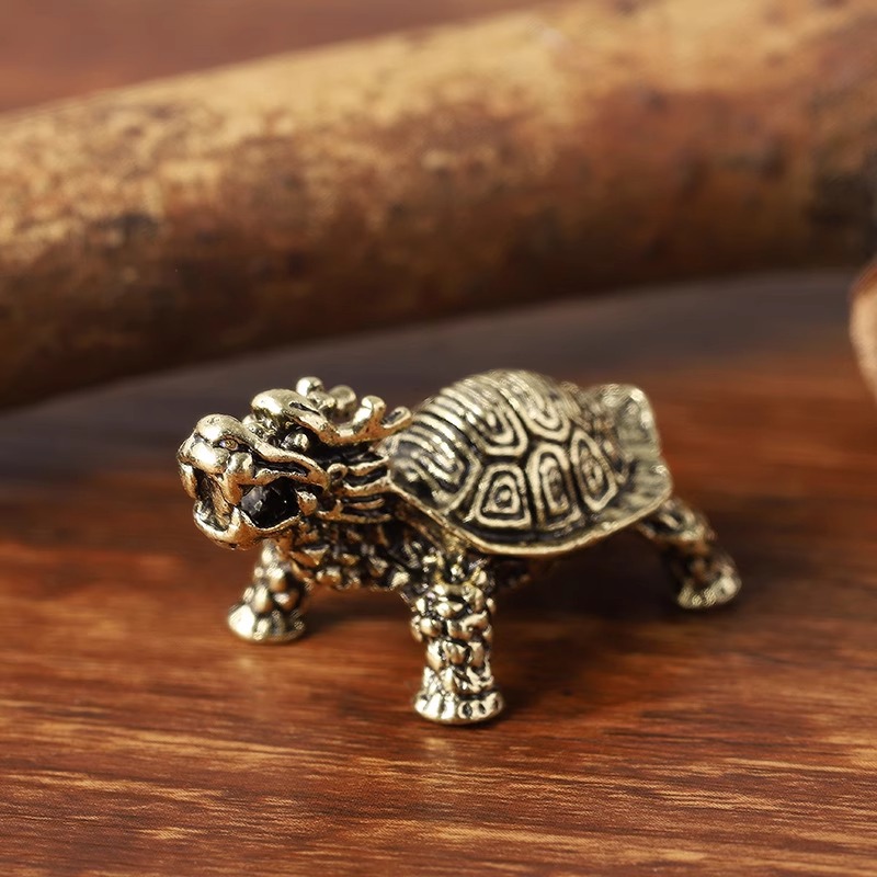 中国风仿铜装饰品龙龟乌龟玄武实心黄铜挂件动物钥匙扣摆件小配件