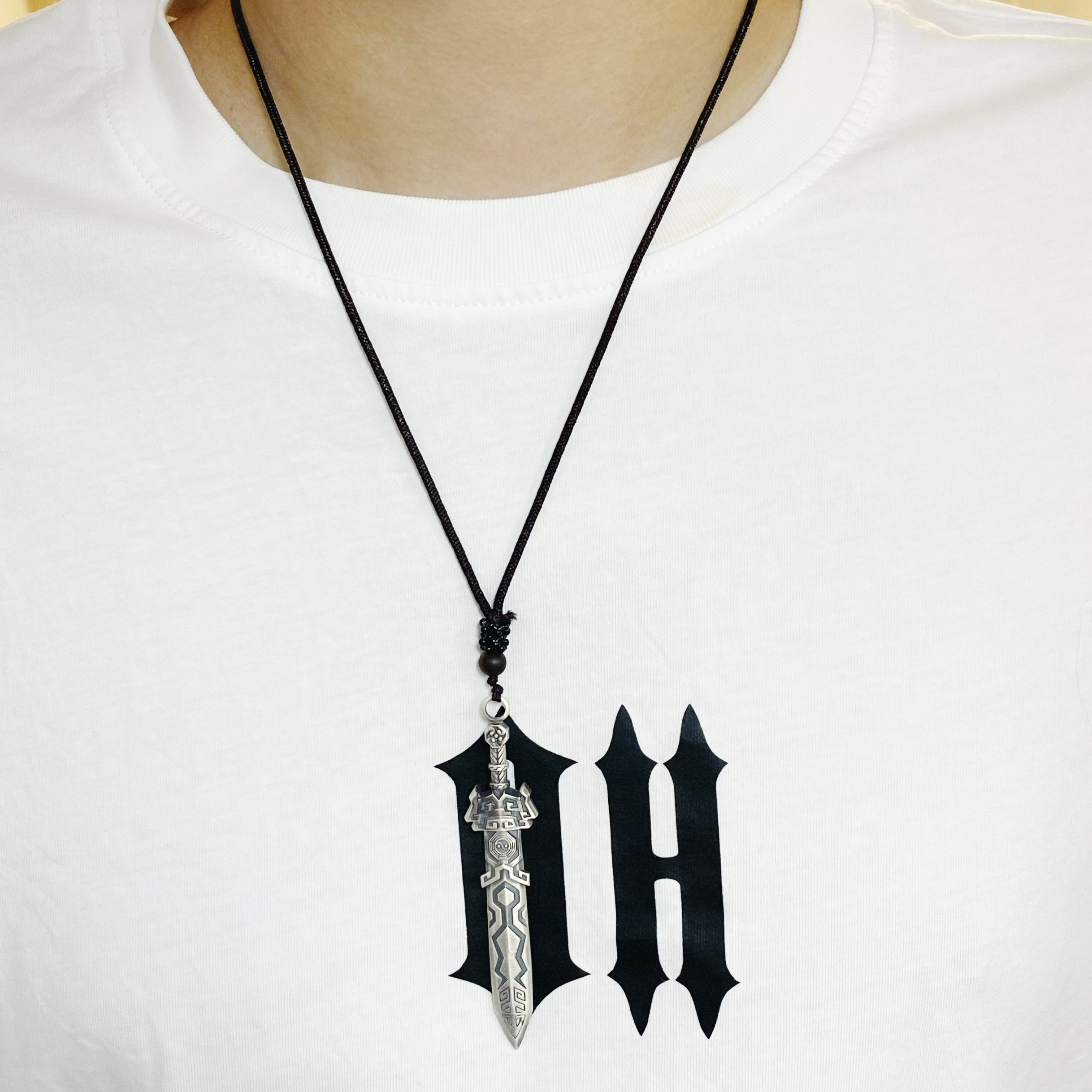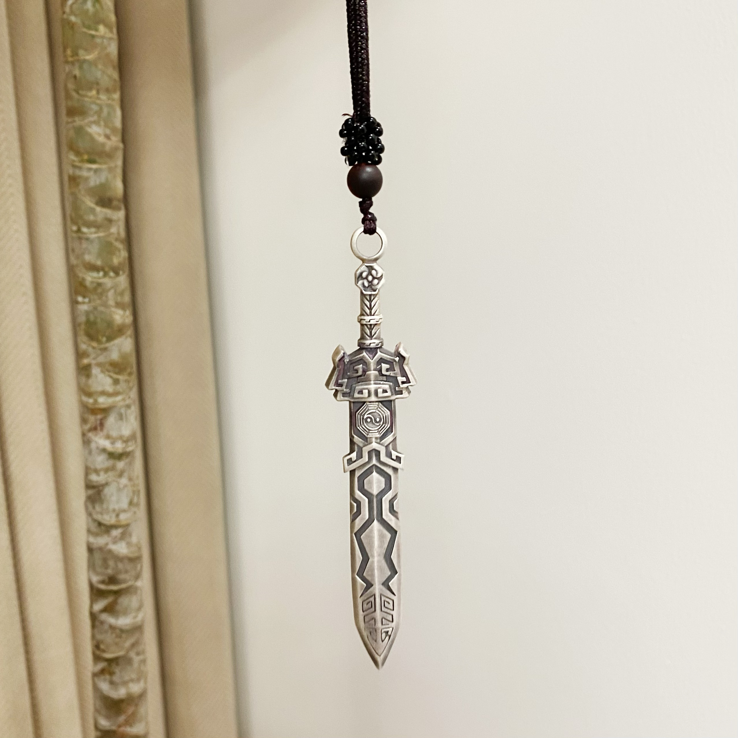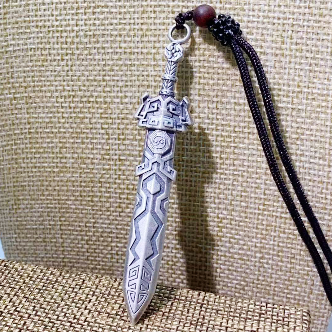 999足银八卦乾坤宝剑项链男士潮个性复古民族风长剑吊坠挂件挂绳