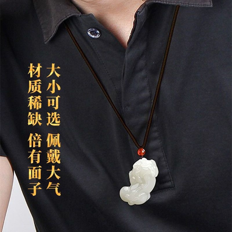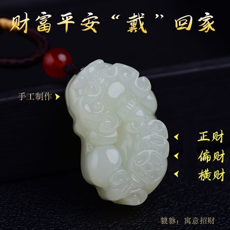和田白玉貔貅吊坠男女情侣款天然正品霸王皮休招财转玉石项链