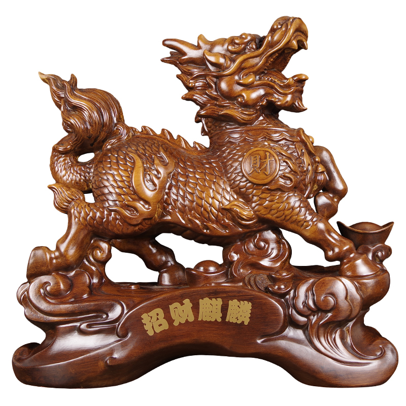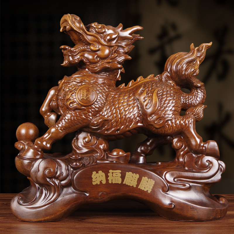 招财纳福麒麟摆件一对办公室桌面店铺开业贺礼家居客厅酒柜装饰品