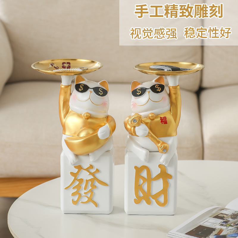 招财猫钥匙托盘收纳摆件前台客厅家居装饰品新店开业乔迁新居礼物