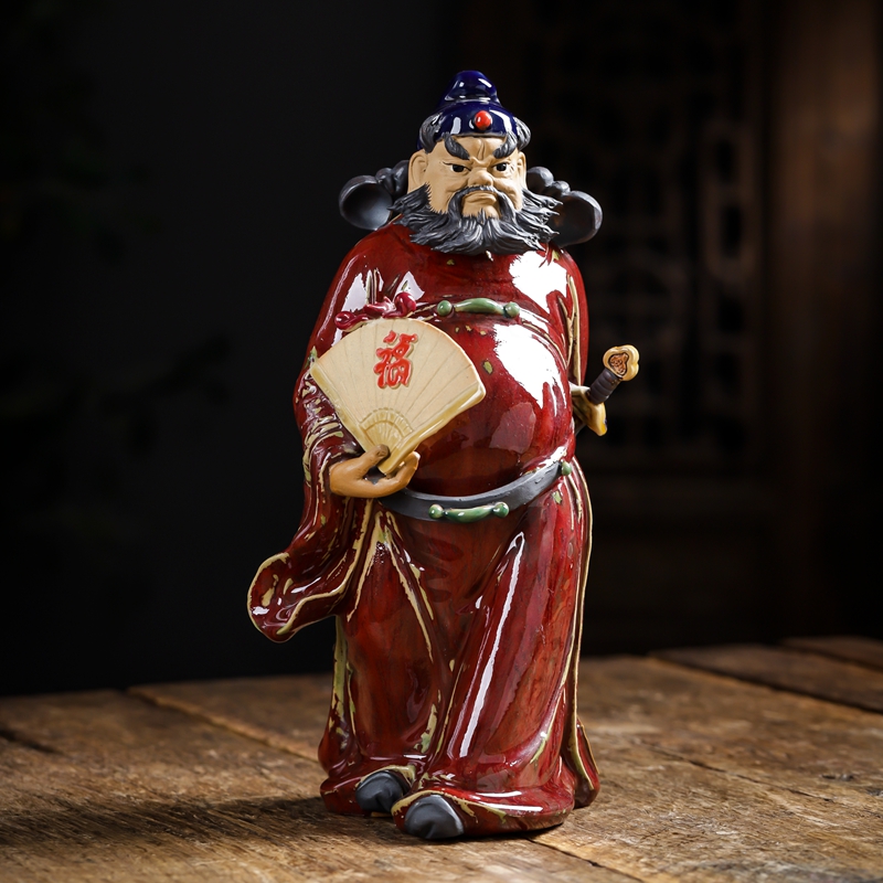美陶石湾公仔陶瓷中式家居客厅钟馗摆件摆设天师钟馗引福归堂