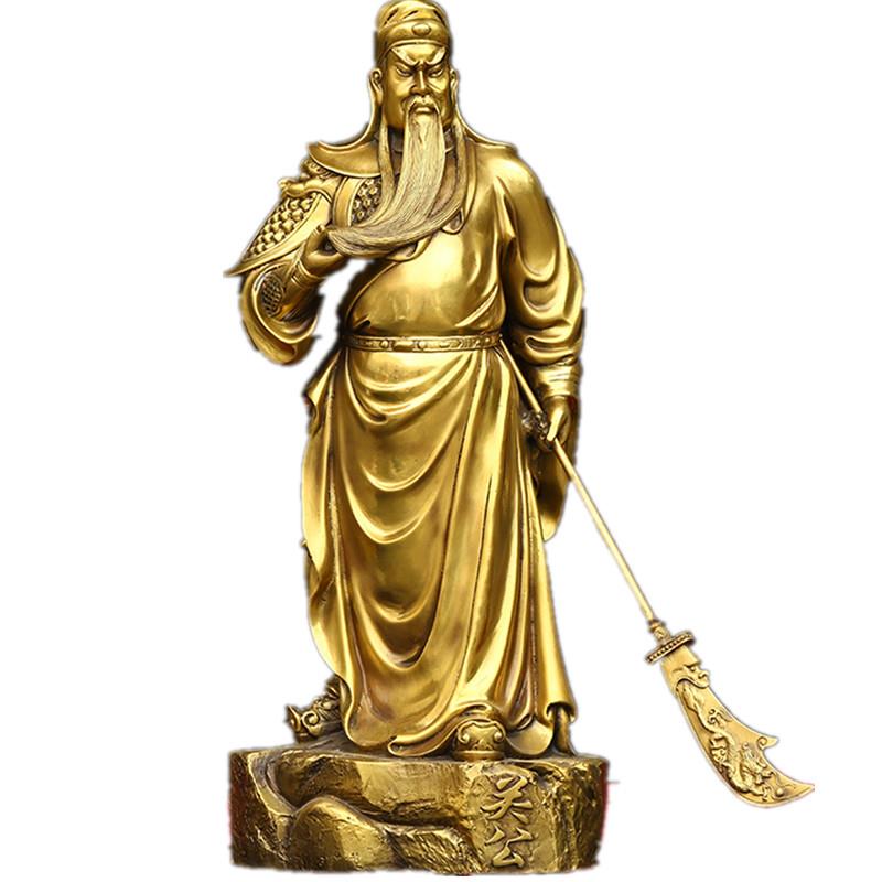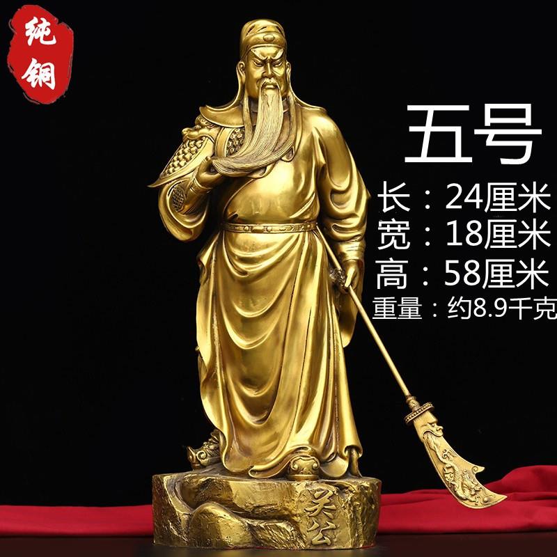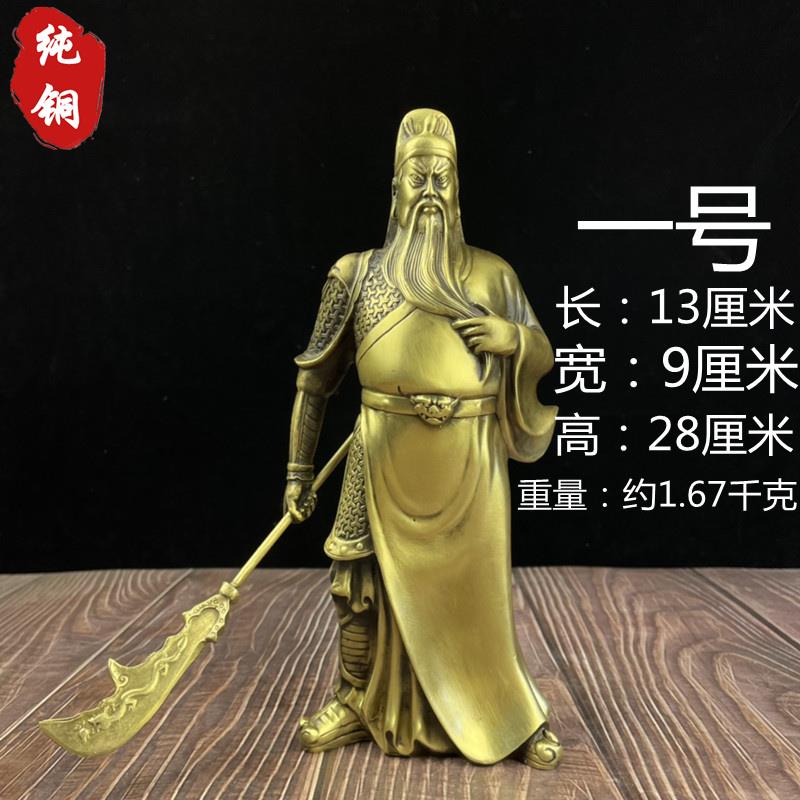 纯铜横刀提刀关公武财神武圣关羽关云长捋须家用供奉礼品桌面摆件