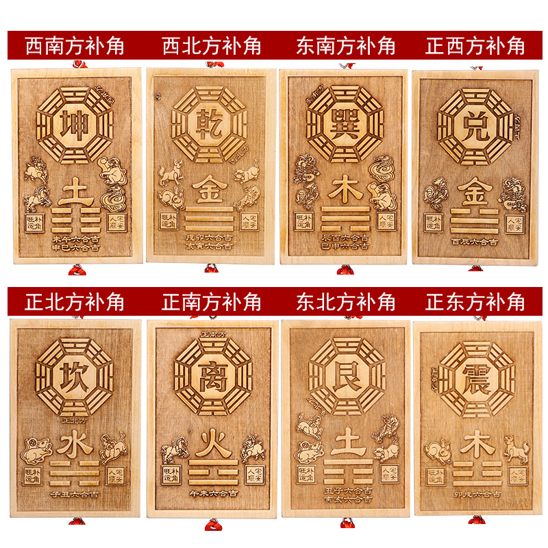 桃木补角牌房屋缺角挂件八卦镜凸镜乾坤卦牌家用客厅室内风水摆件