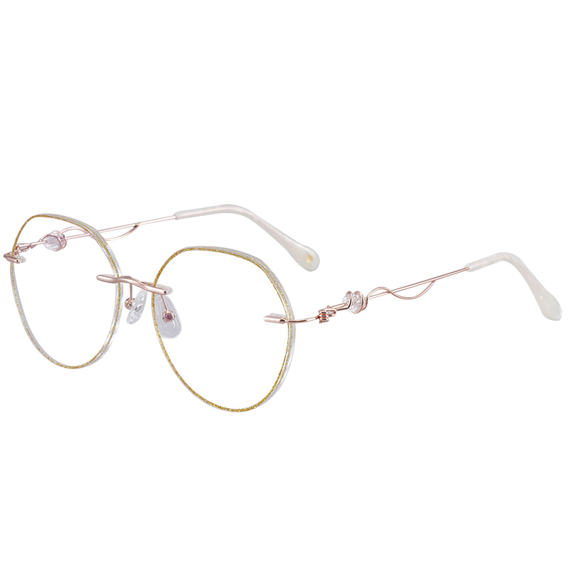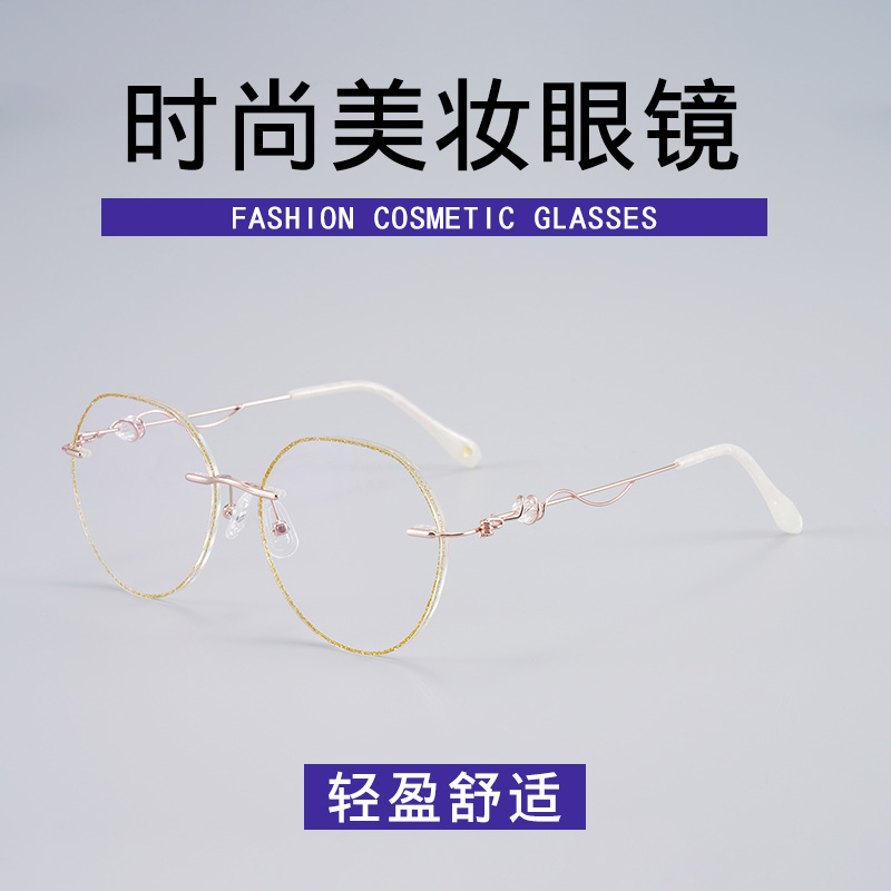 彩粉多边形无框近视眼镜亮彩美妆抖音小红书网红无框平光防蓝光镜