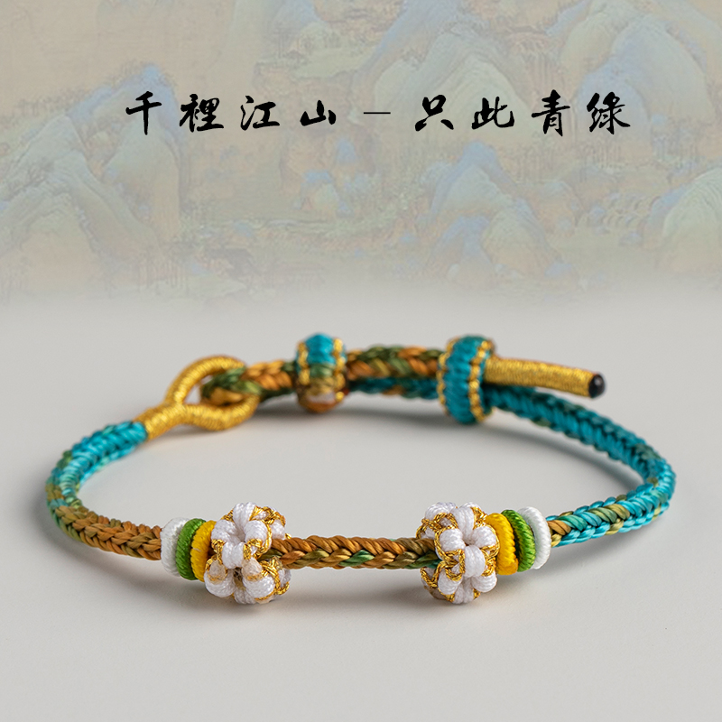 千里江山手绳 纯手工编织桃花线圈可调节半成品手链可穿吊坠