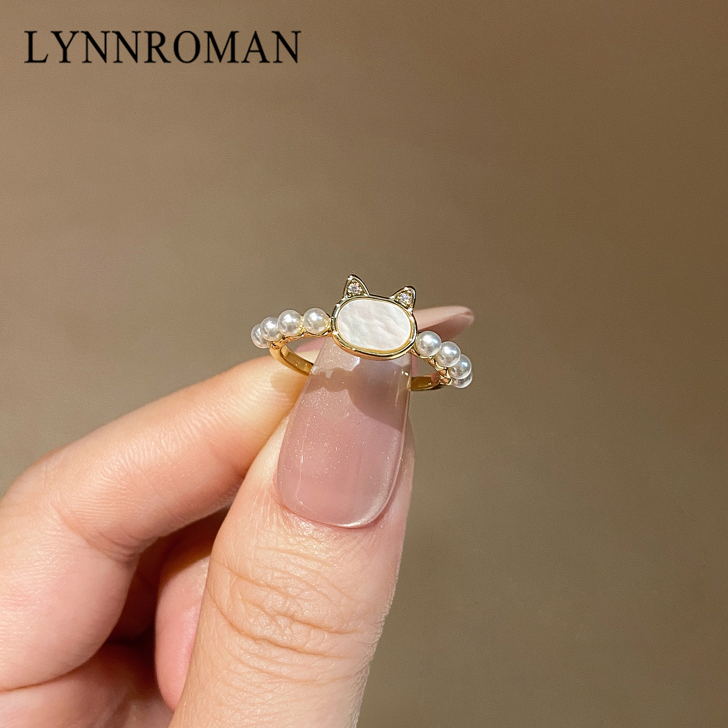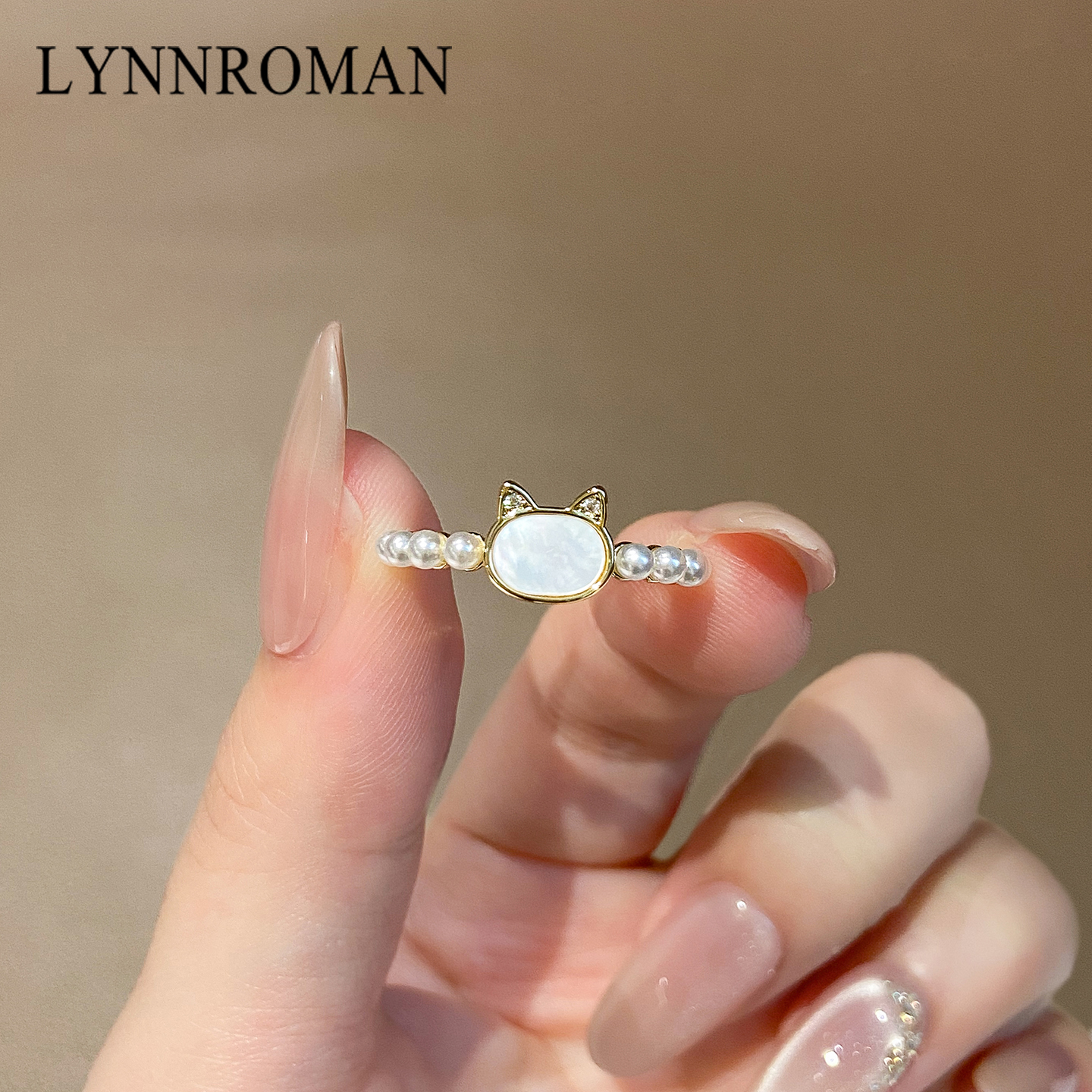 LYNNROMAN可爱小猫高级感戒指女款仿猫眼石日系食指戒开口可调节