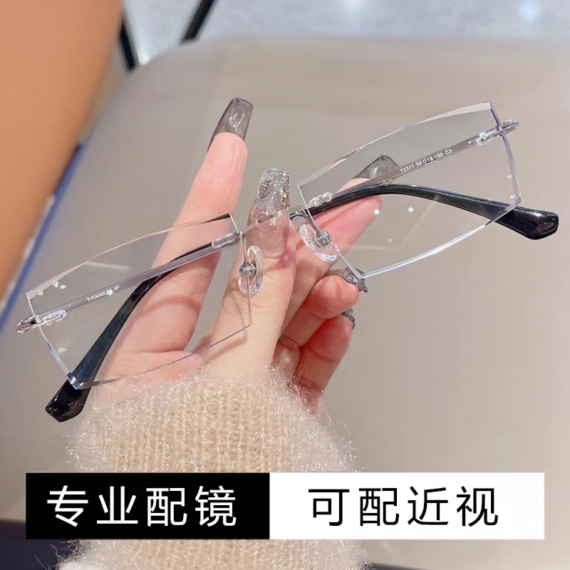 防雾纯钛无边框近视眼镜男款 可配有度数简约男近视镜变色配眼镜