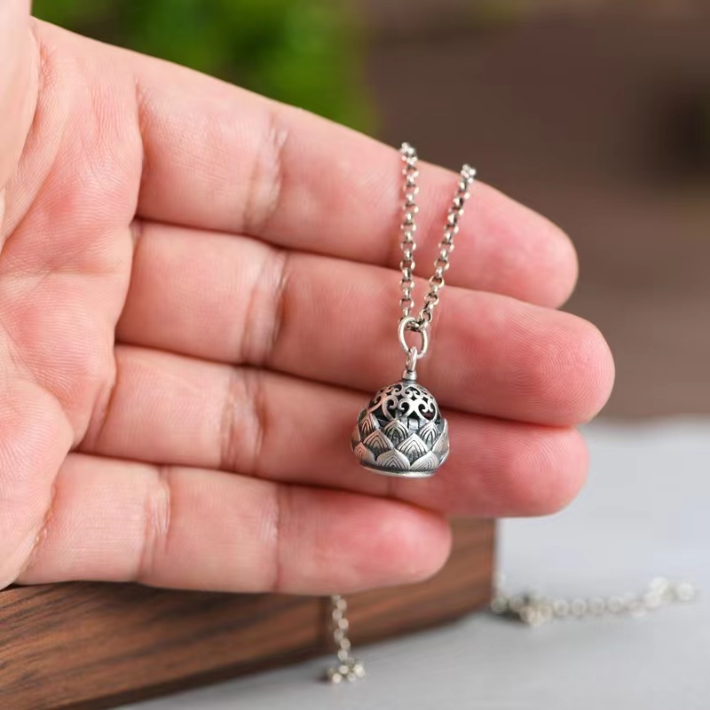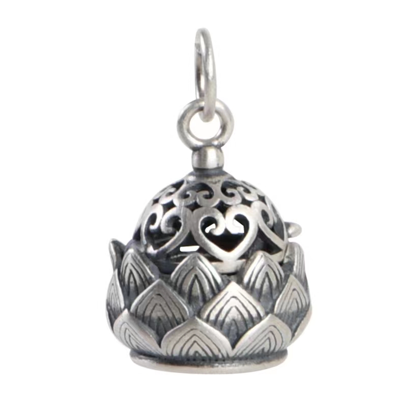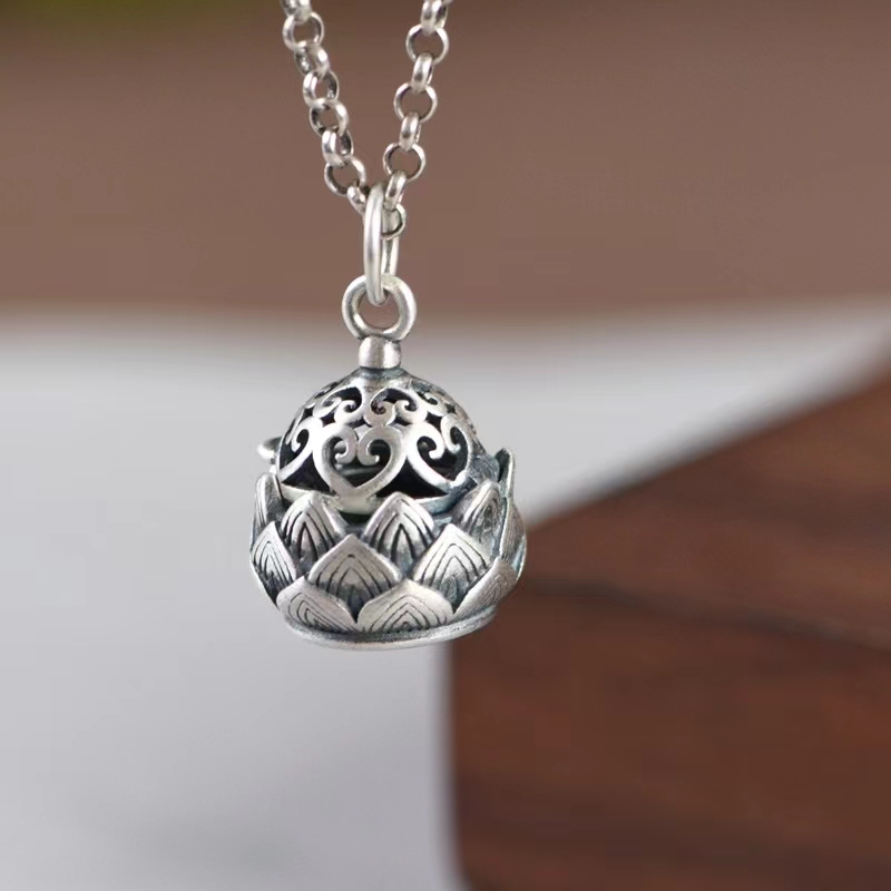 莲花镂空S925纯银复古做旧工艺吊坠女可打开香囊香薰香丸吊坠挂件