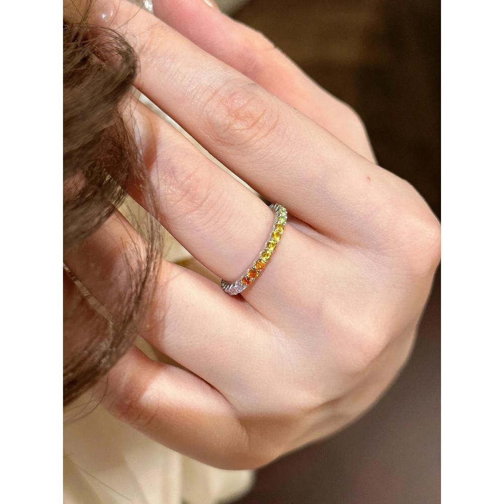 高保色夏日多巴胺彩色排钻戒指女简约时尚轻奢高级感甜美百搭指环