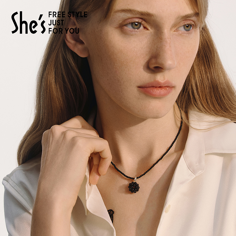 shes茜子巴比耶优雅黑莓玛瑙项链轻奢小众设计感颈链手链耳环饰