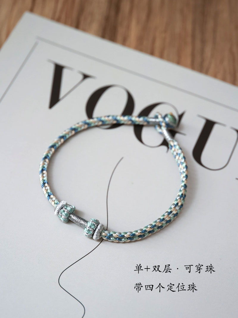 撞色双层八股四面佛手绳可穿珠手工编织手链礼物diy材料包免自编