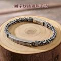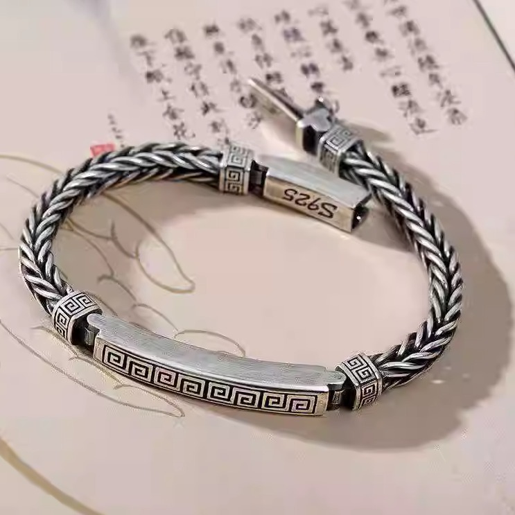 镀银回字纹手链男潮复古做旧编织绳双层可调节个性百搭小众