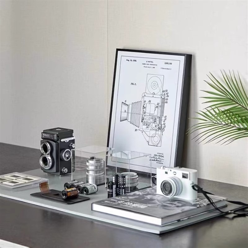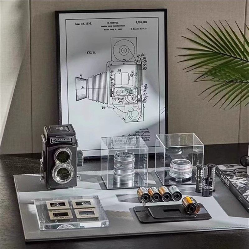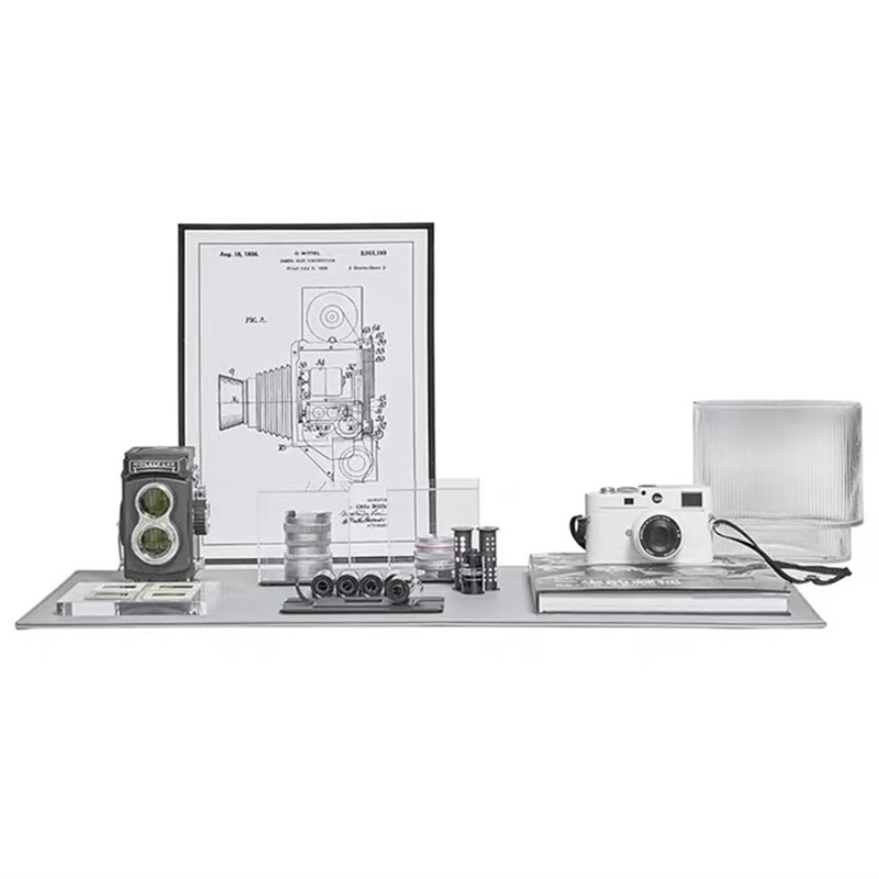 样板间书房装饰品软装摄影师主题组合书桌相机模型胶卷摆件家居