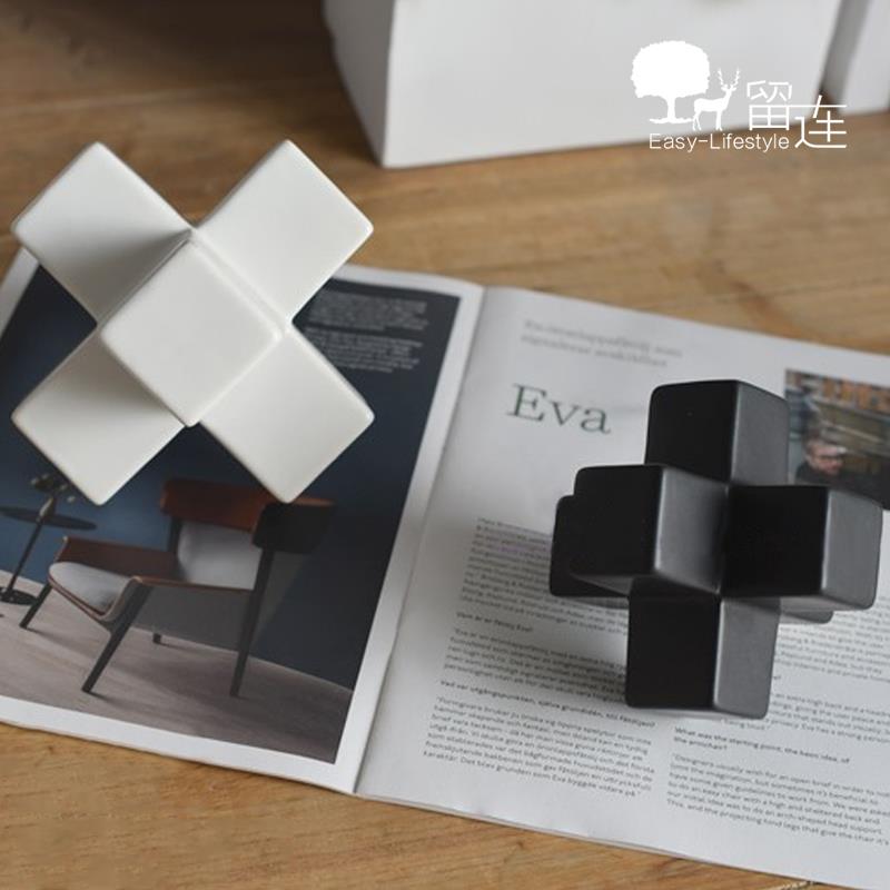 几何体黑色白色陶瓷摆饰样板间极简层板餐桌台面软装饰品家居艺术