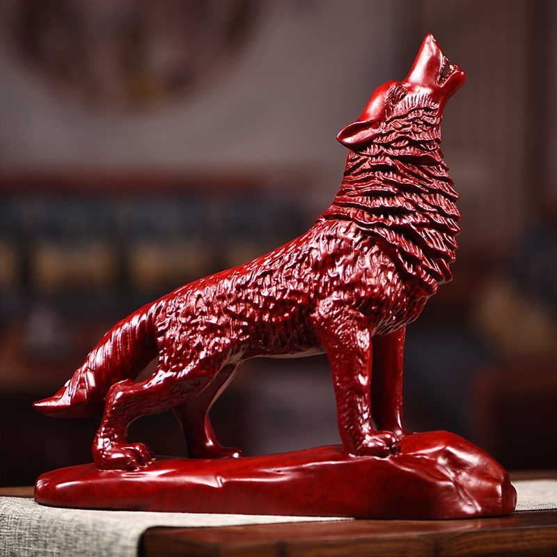 木雕狼摆件实木狼摆件招财领头狼摆件客厅办公室茶桌装饰家工艺品