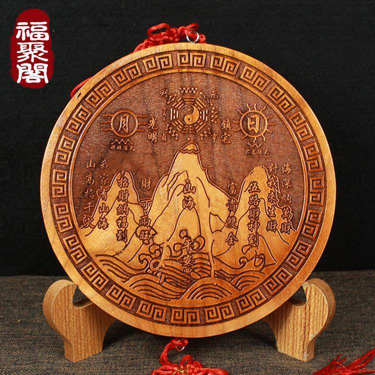 正宗桃木山海镇图挂件室内摆件室外家居木雕客厅家用大门装饰房屋