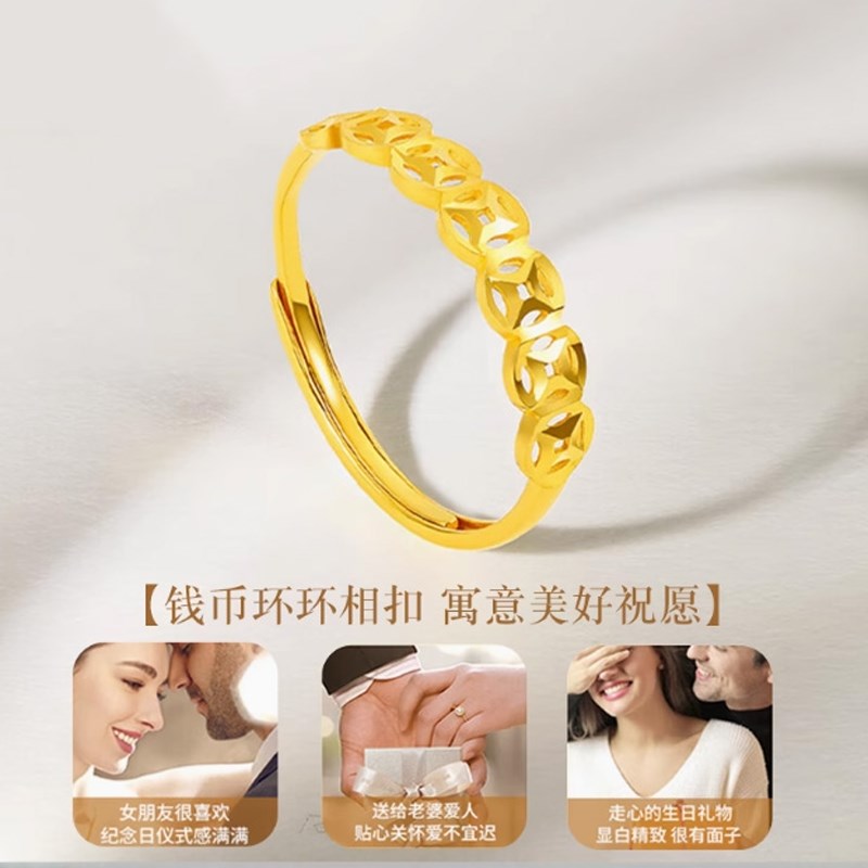 深圳水贝金包银招财钱p币戒指时尚镂空铜钱指环闭口情人节日送女