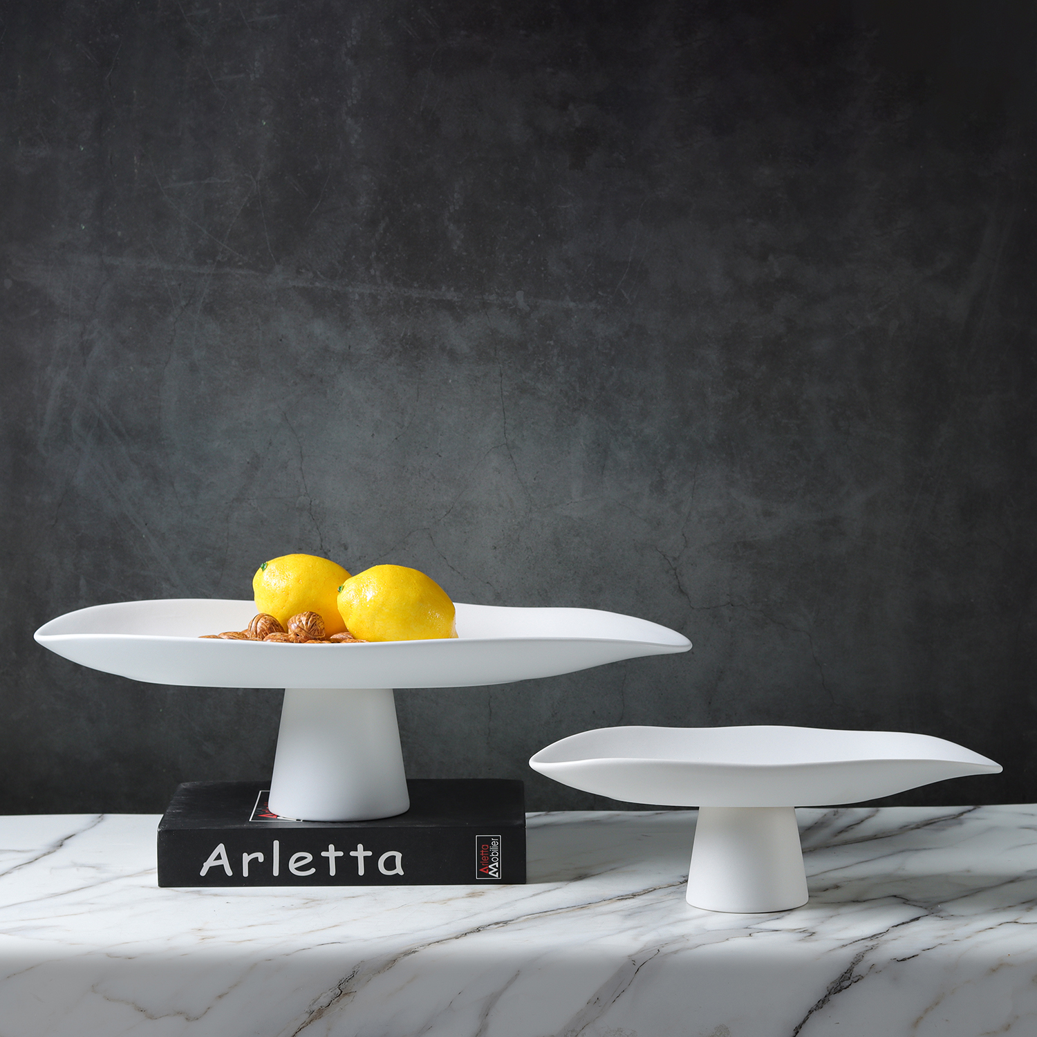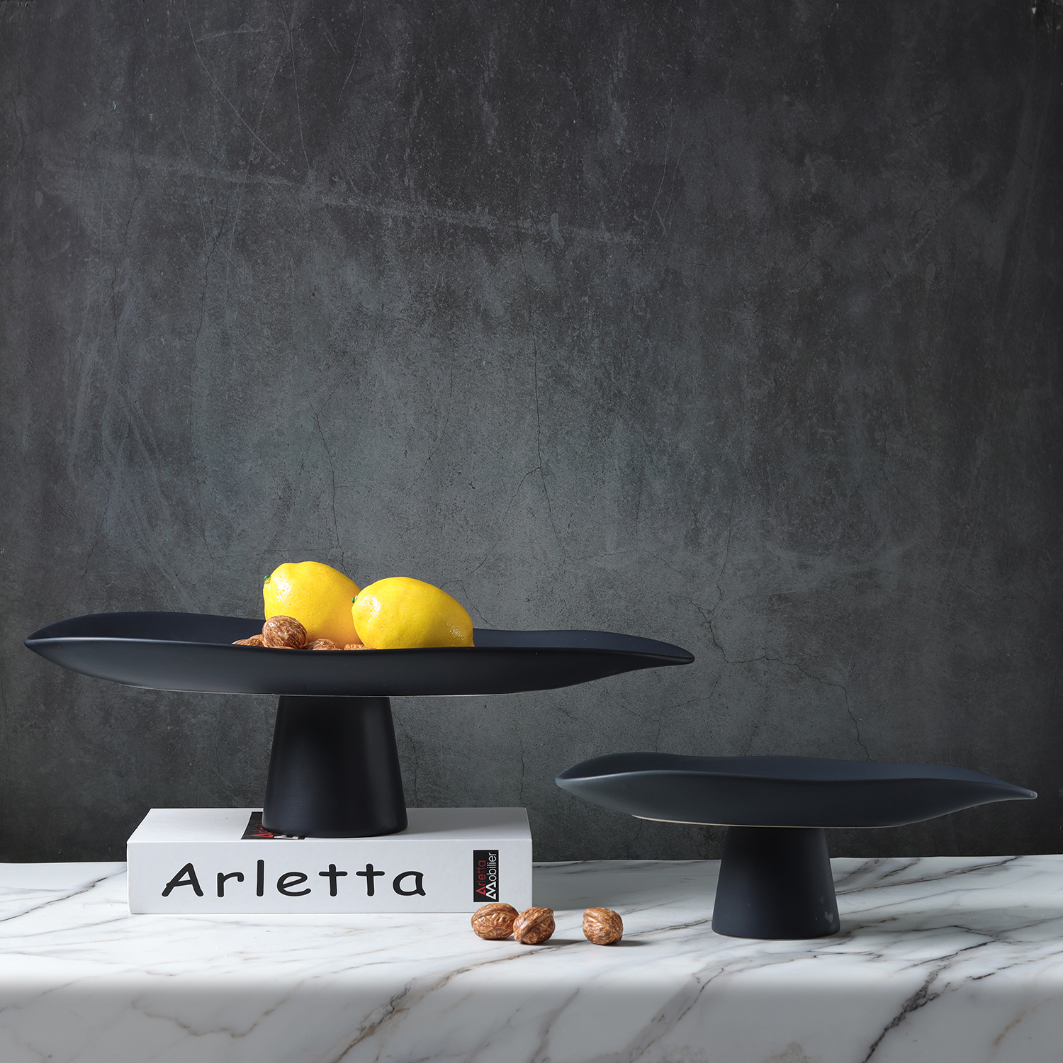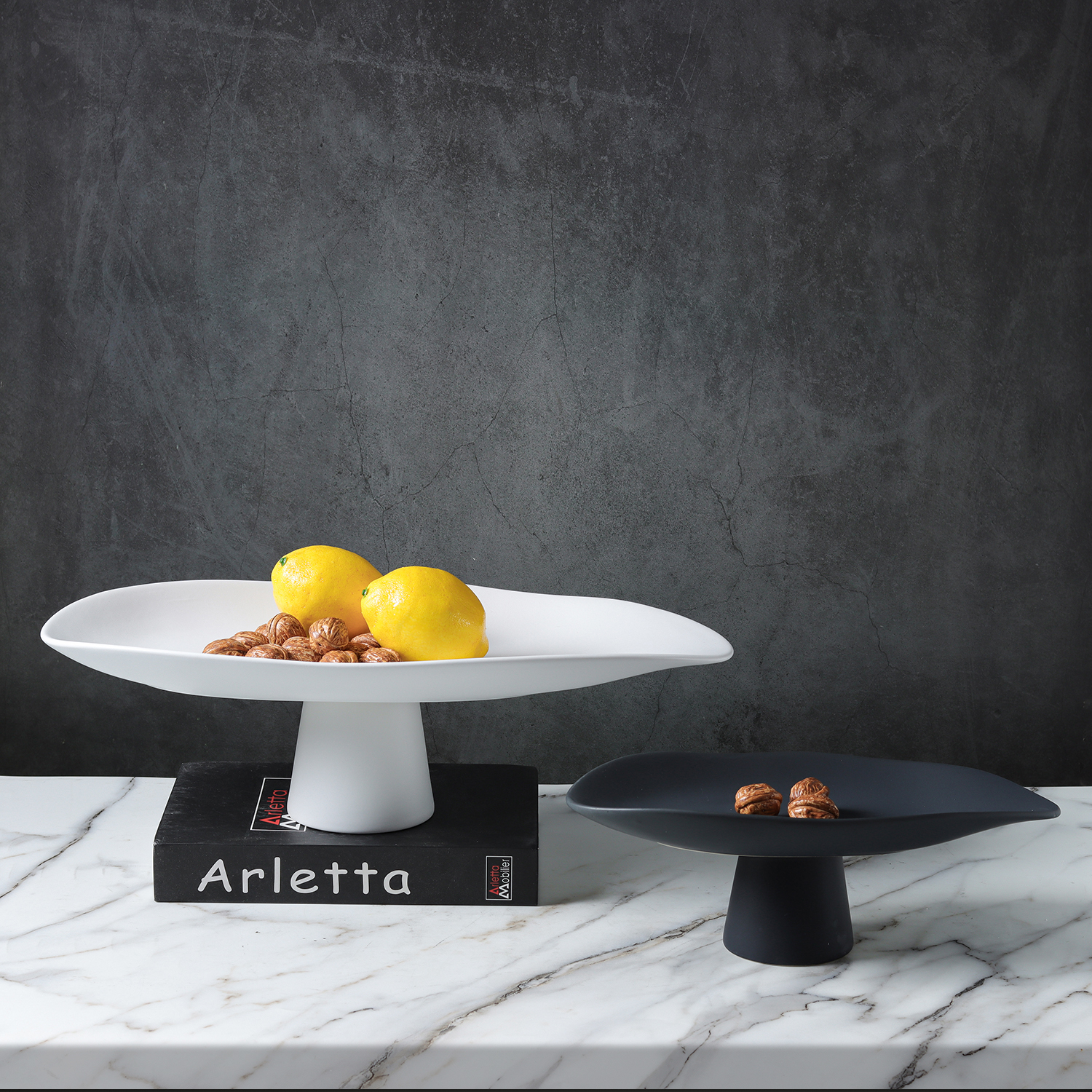 现代新中式北欧创意黑白陶瓷托盘果盘摆件家居样板房软装饰品用品
