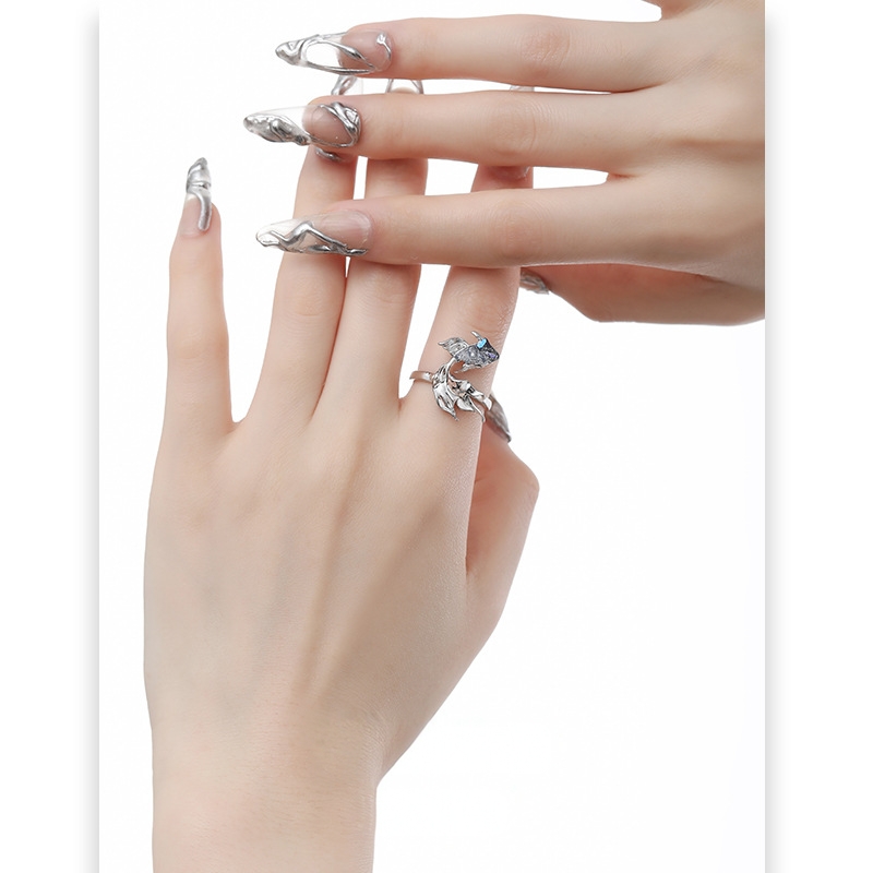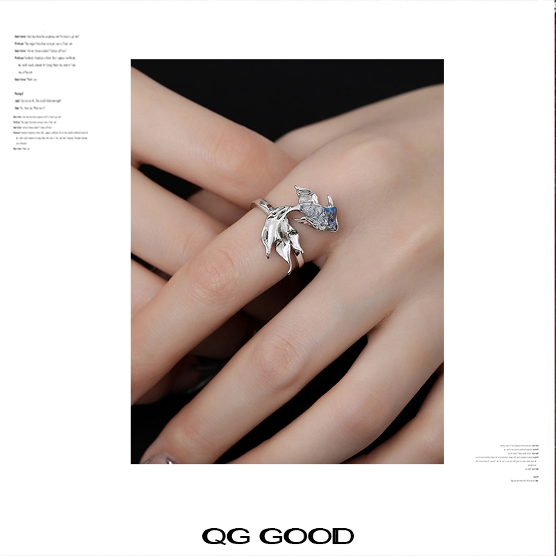 QG渐变蓝金鱼戒指女小众高级感食指戒冷淡风时尚开口指环冰蓝金鱼