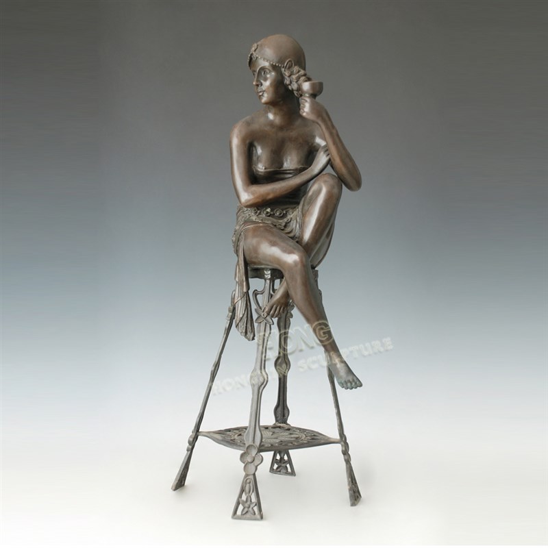 铜雕塑喝酒少女EP266欧式人物工艺饰品客厅书房酒柜家居桌面摆件