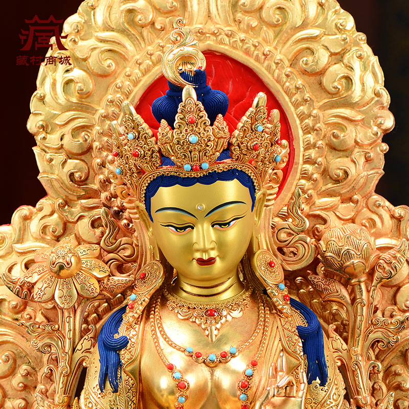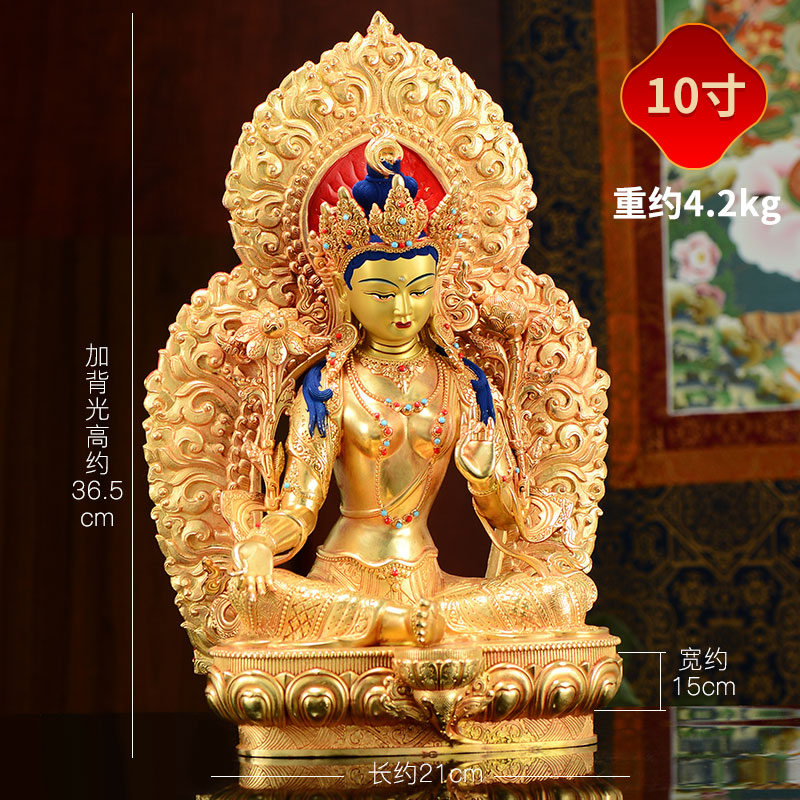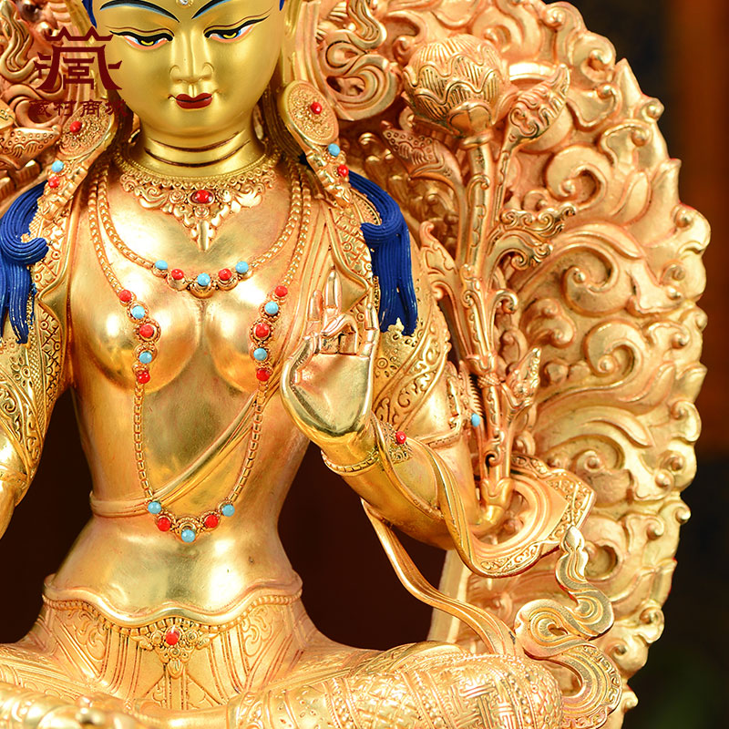 藏村全鎏金《绿度母》室内家用精工铜《绿多罗观音》铜像桌面摆件