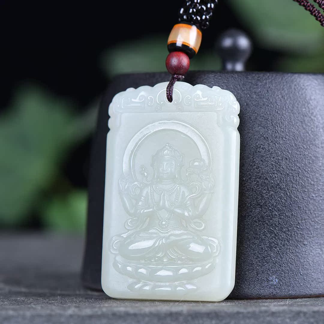 新疆和田玉羊脂玉白玉青白玉四臂观音菩萨吊坠男女款挂件玉坠玉佩