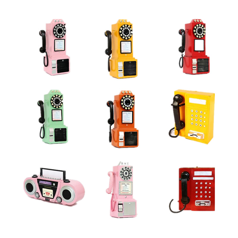 欧式复古怀旧创意老式铁皮电话机模墙面型挂件装饰拍摄影道具摆件