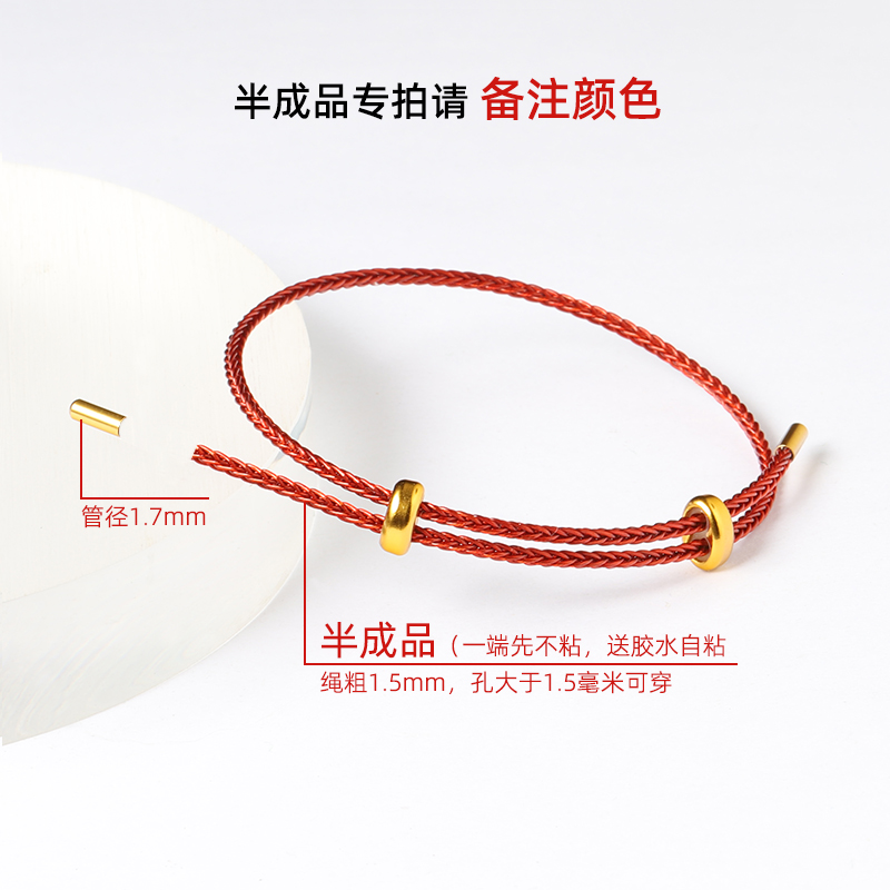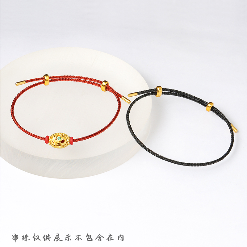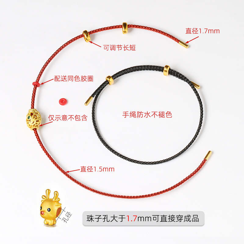 可调节细款转运珠手绳穿3d硬金黄金编织红绳皮绳女防水钢丝绳手链