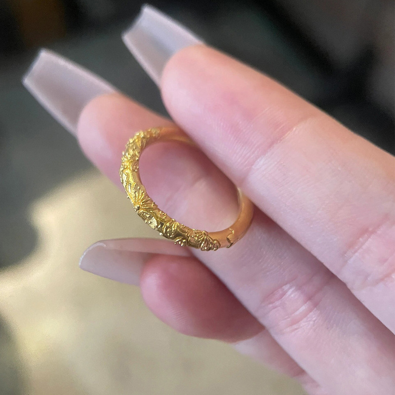 鎏金紫荆花指环女新款气质华丽雕花素圈戒指气质小众