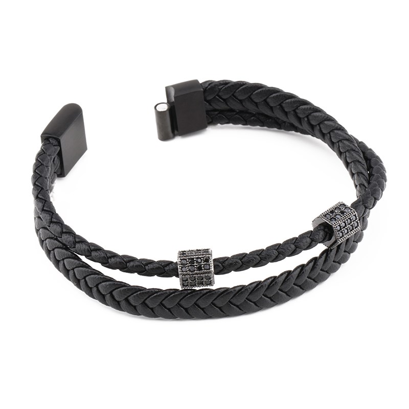 小众设计高级感黑色皮质编织手绳男女学生日韩土酷嘻哈情侣手链潮