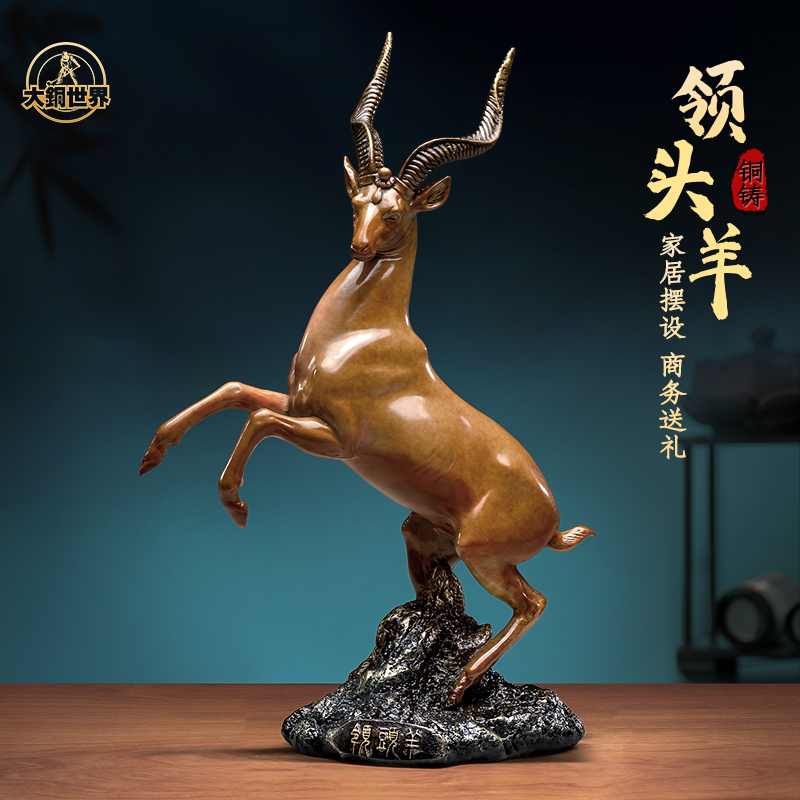高档轻奢铜领头羊桌面前台办公室家居装饰摆件商务开业送礼工艺品