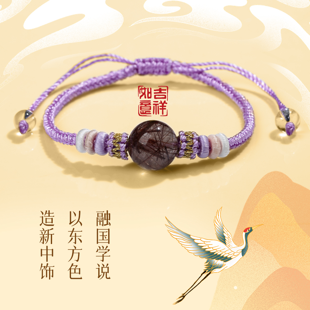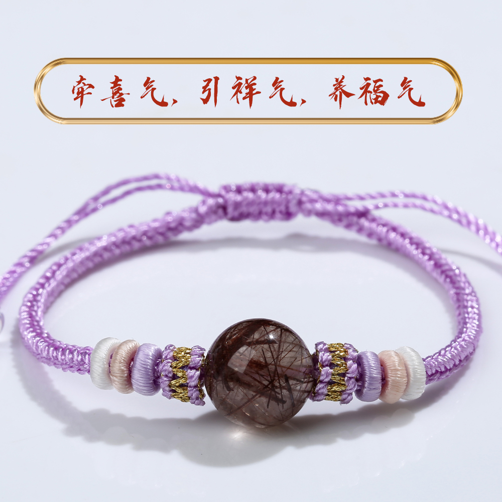 天地阁红发晶手绳白水晶姻缘红绳手链招桃花转好运珠绳编手串礼物