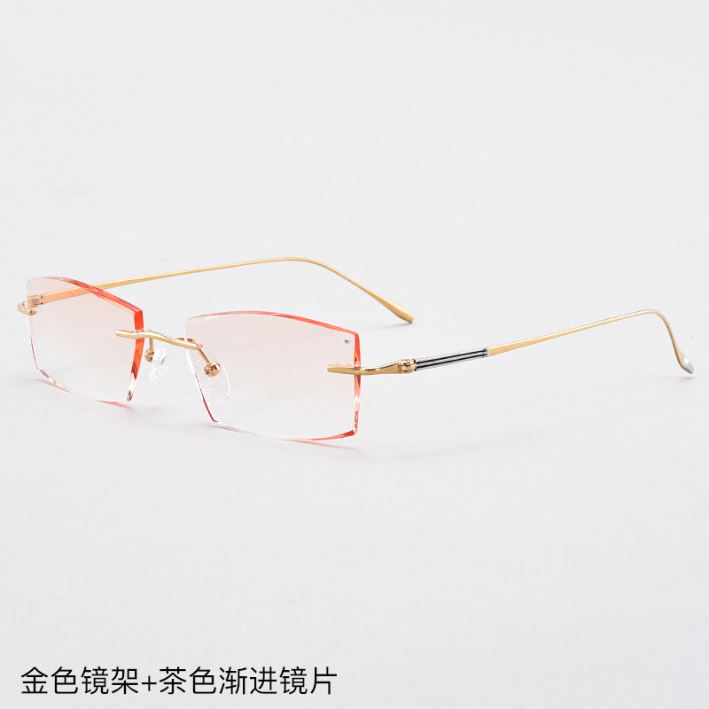 配成品无框近视眼镜男 女款纯钛超轻切边有度数眼镜大宽脸防蓝光