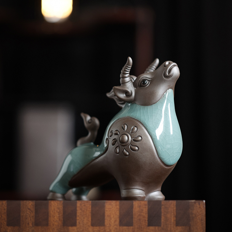 牛气冲天陶瓷牛摆件创意家居客厅办公室桌面招财牛装饰品吉祥物
