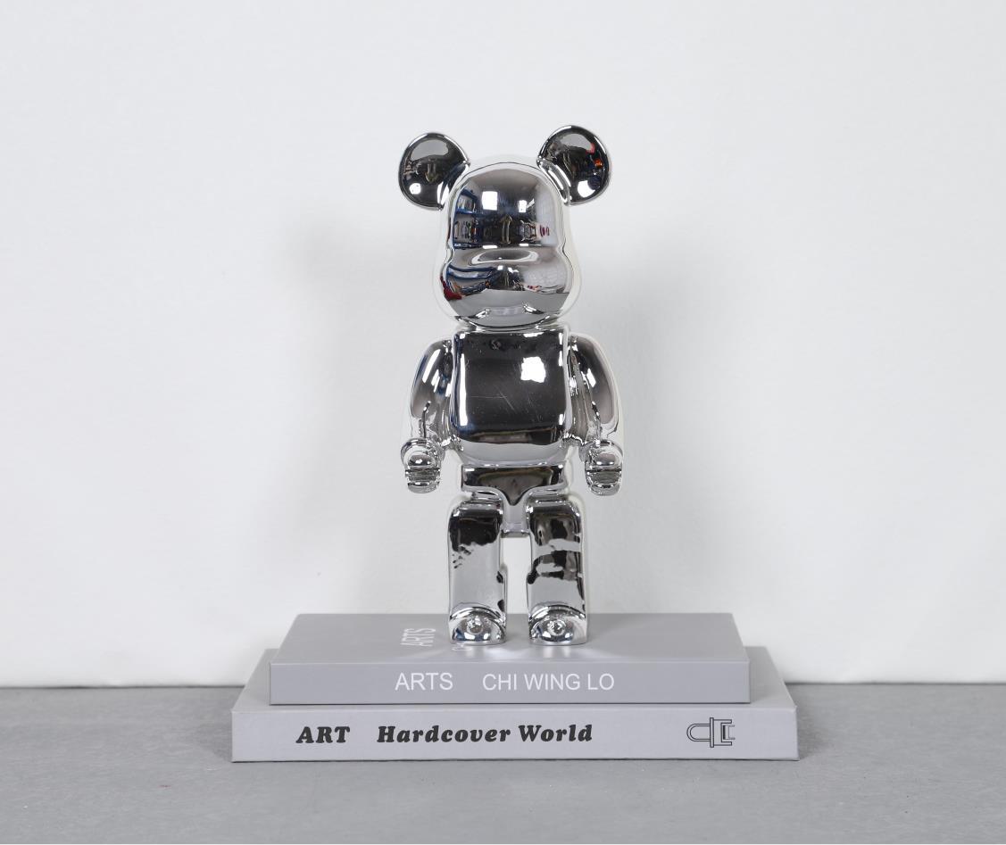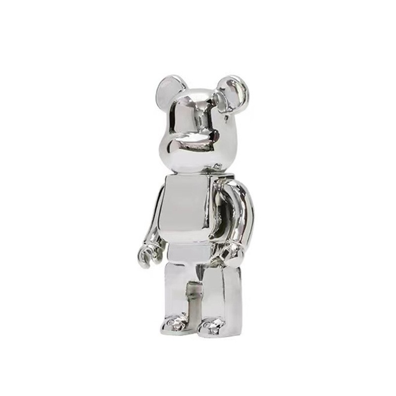 现代简约潮流银色暴力熊公仔摆件样板房售楼处儿童房客厅软装饰品