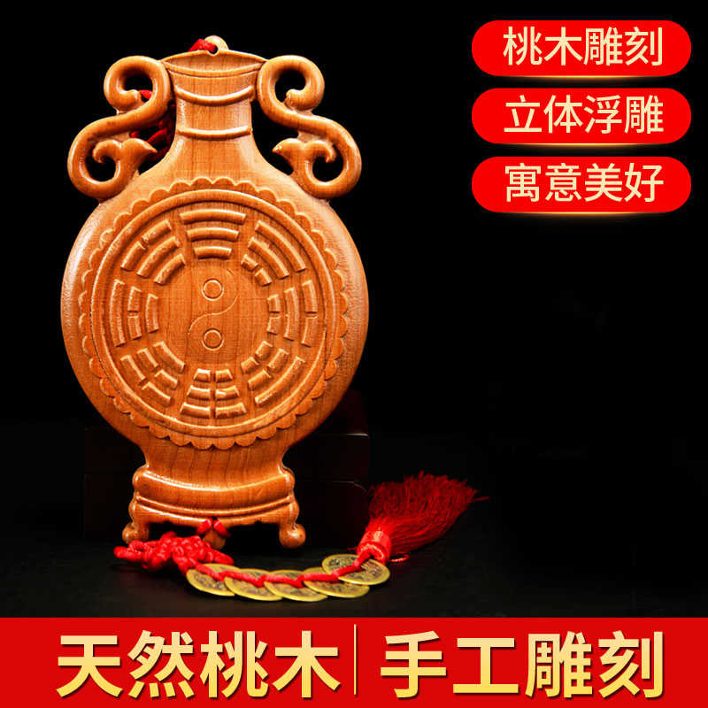 禅意阁 木雕桃木平安瓶挂件桃木镜摆件门对门卫生间厨房次卧家居