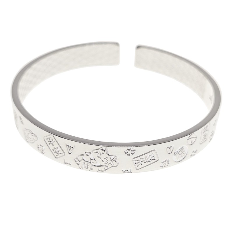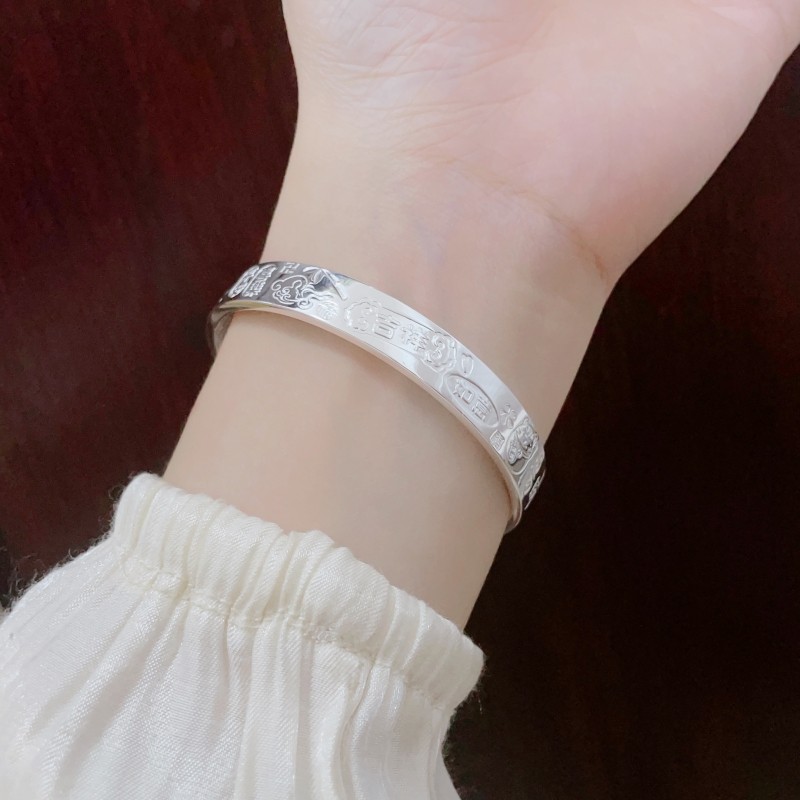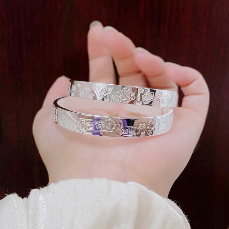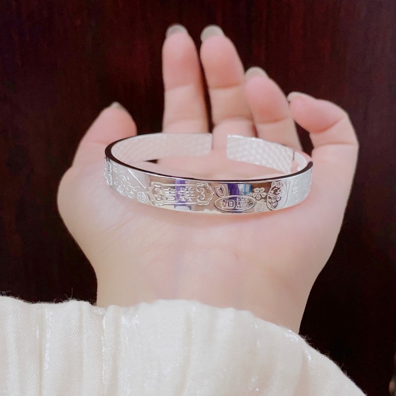 足银9999平安喜乐吉言银手镯女光面纯银手环国风气质闺蜜女友礼物