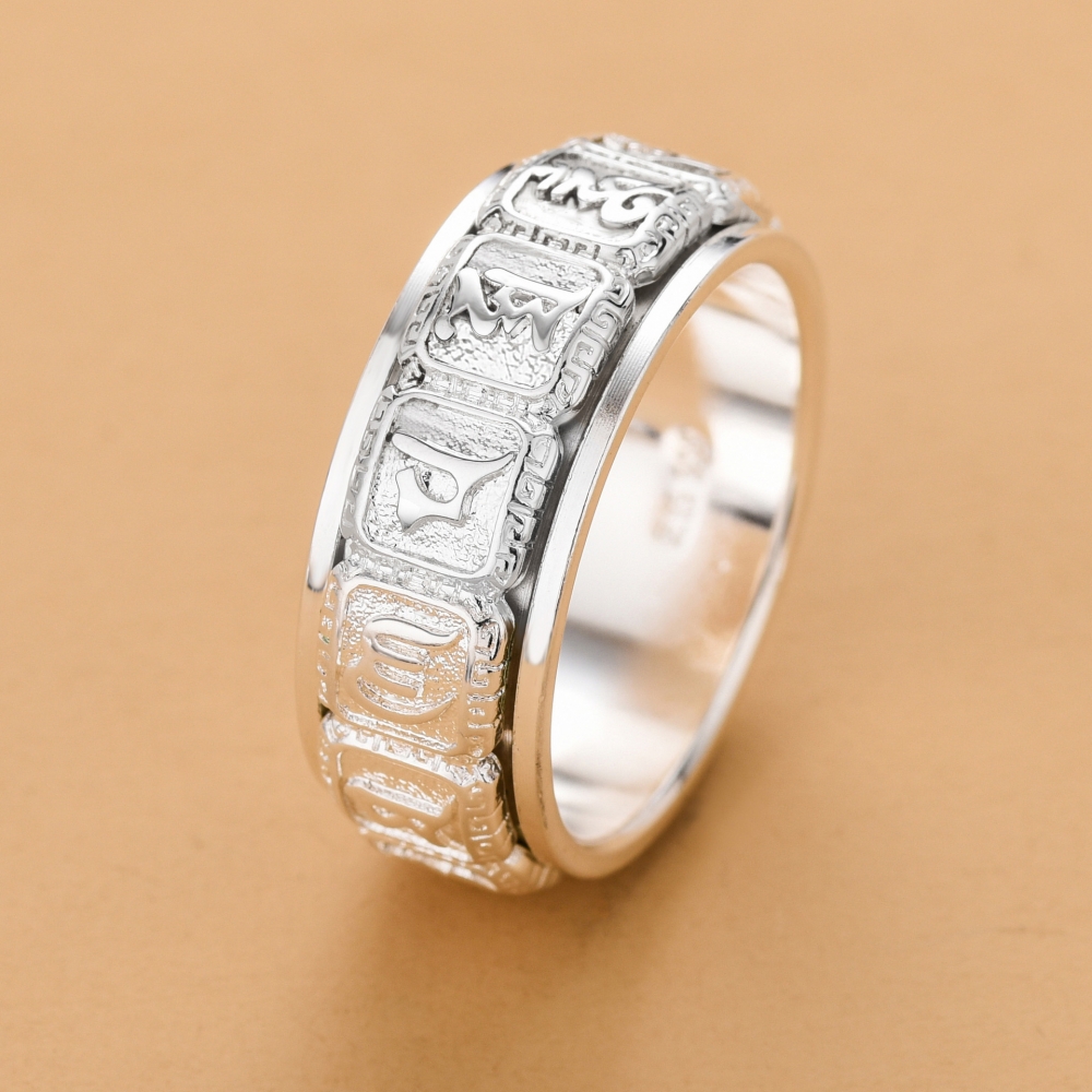纯银999六字真言旋转情侣潮男女戒指男士个性可转动闭口食尾指环