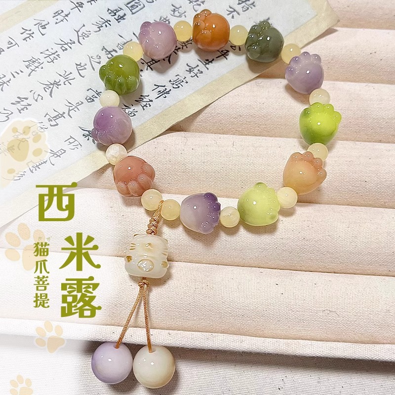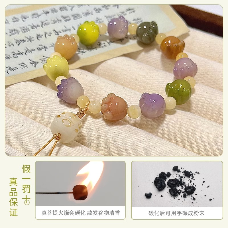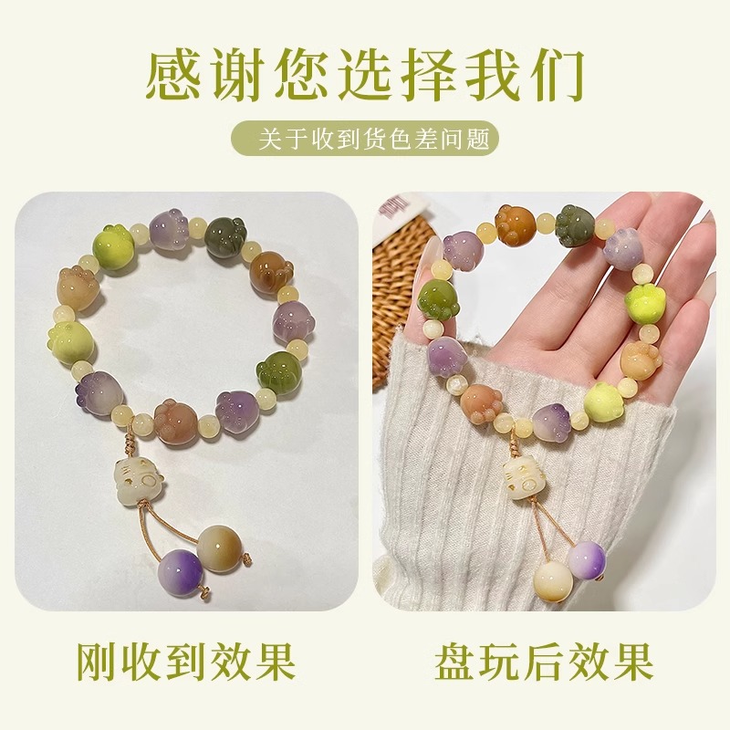 正品紫色猫爪菩提根手串学生绕指柔盘玩白玉菩提子女文玩佛珠手链