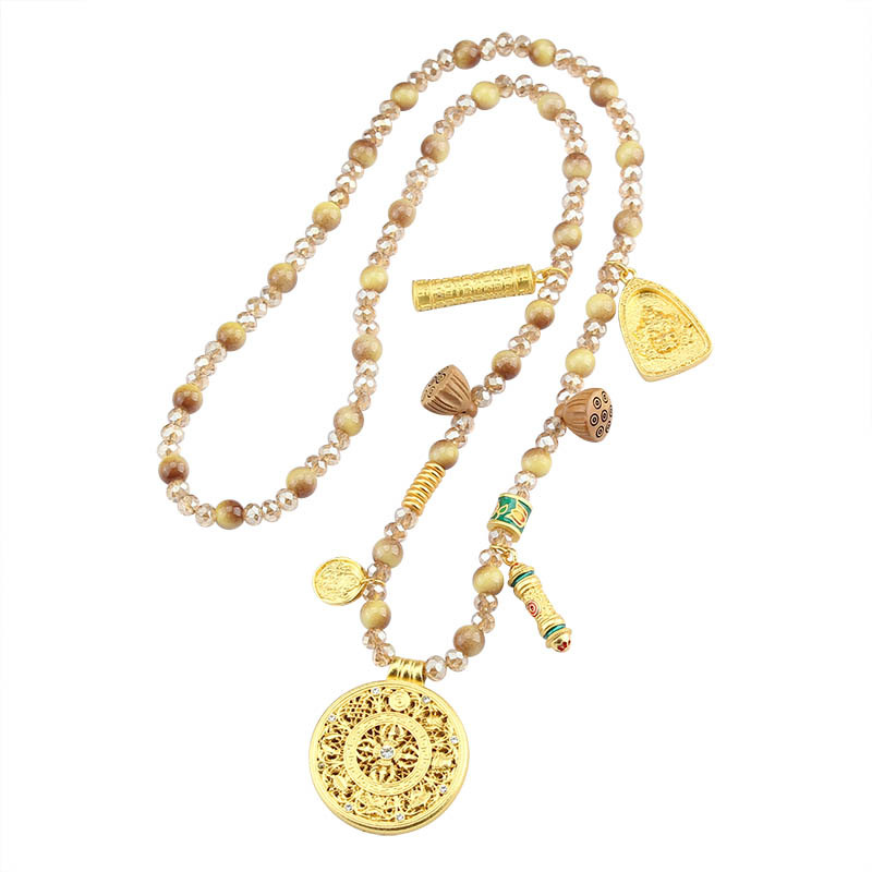 新中式仿金虎眼石串珠项链女复古轻奢气质水晶高级感时尚毛衣链饰
