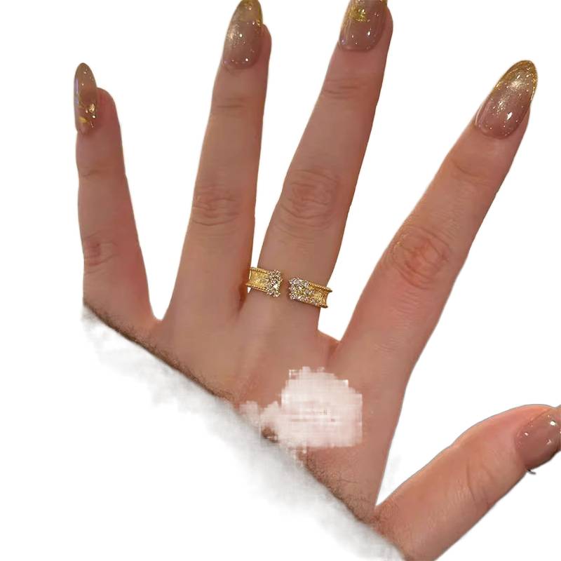 新品超闪!古法不规则排钻繁星点点戒指精致复古指环