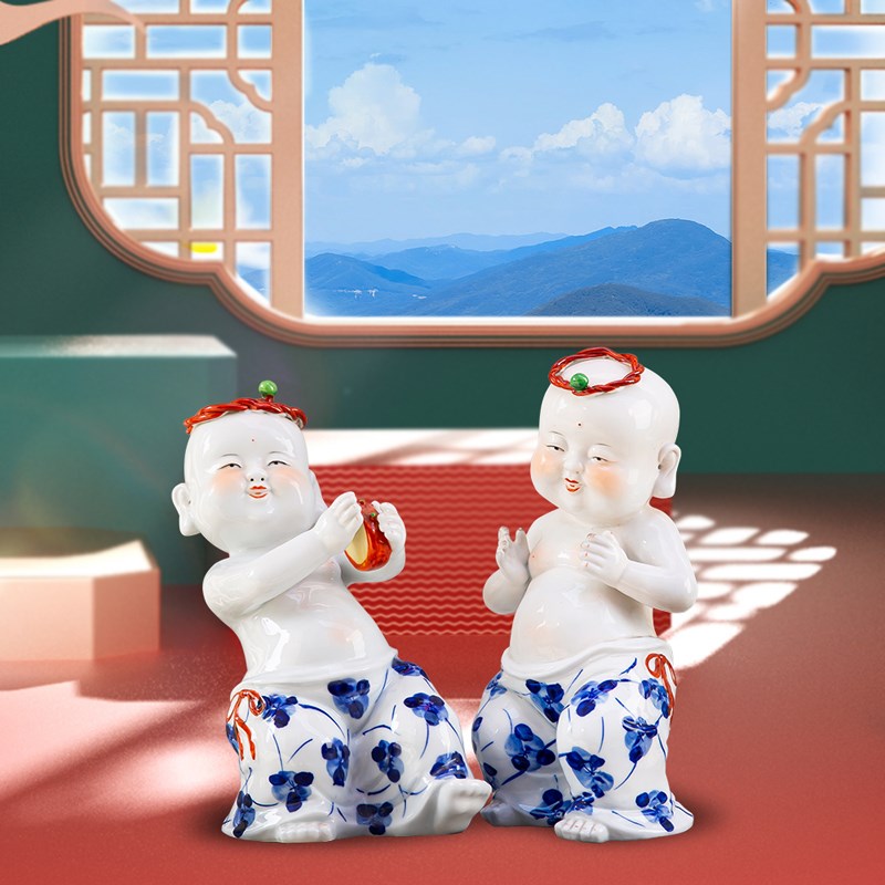 景德镇陶瓷大吉大利雕塑公司开业客厅家居电视柜酒店桌面装饰摆件