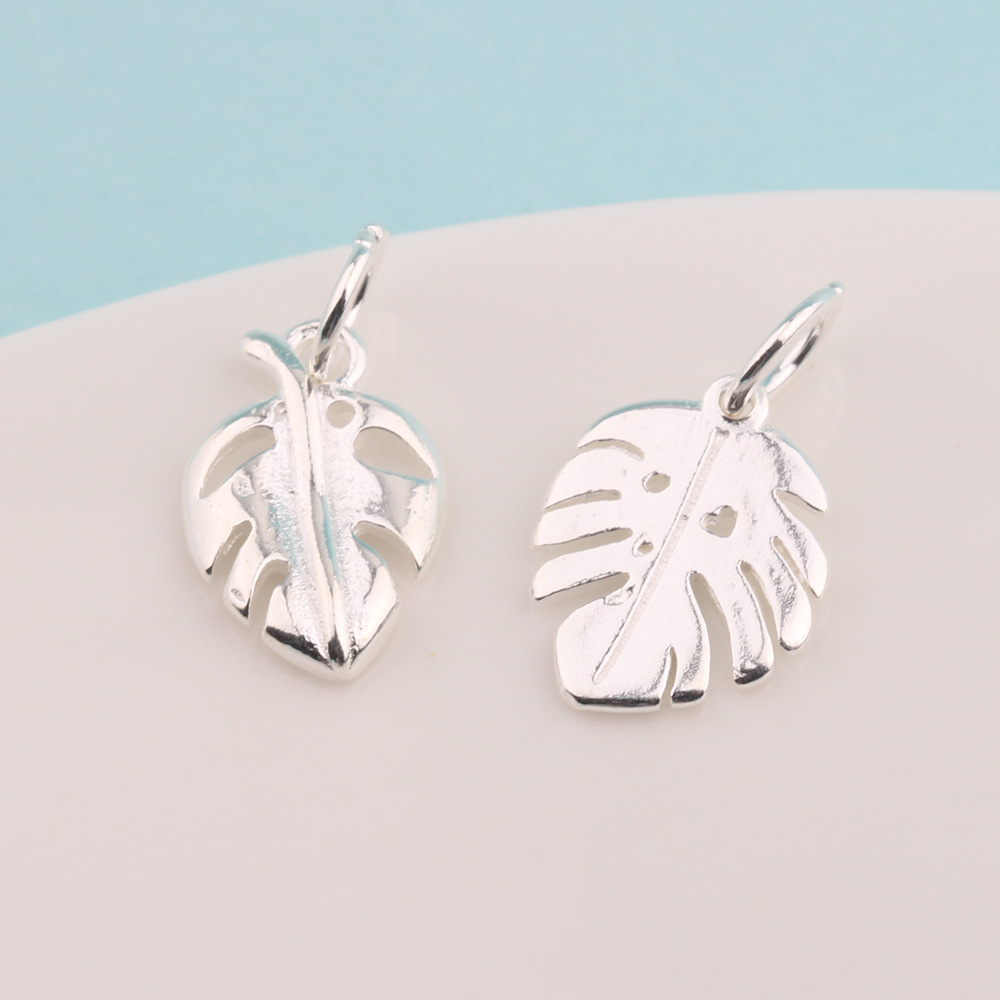 新款s925纯银吊坠 素银树叶银牌 diy手链挂件时尚配件配饰