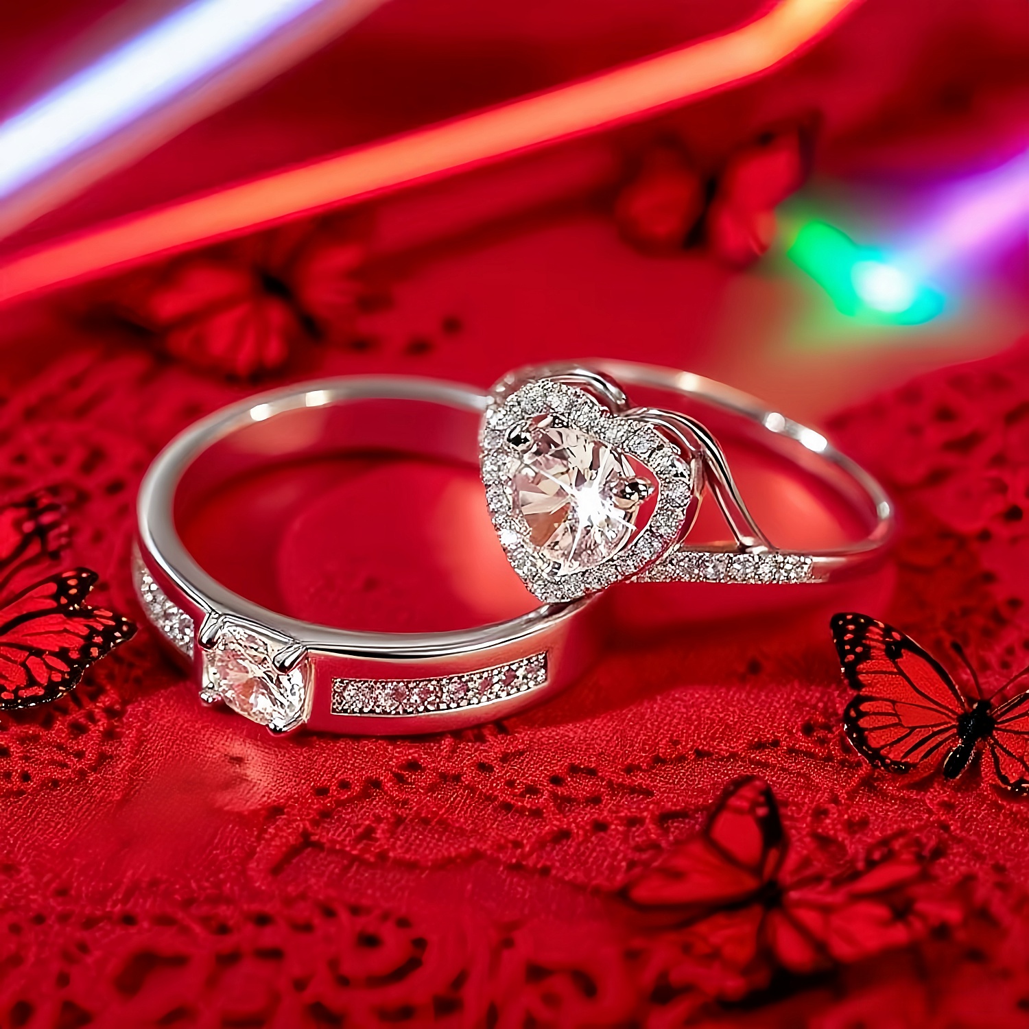 仿真钻戒男对戒微镶爱心形女结婚戒指一对情侣求婚礼仪式拍照道具