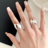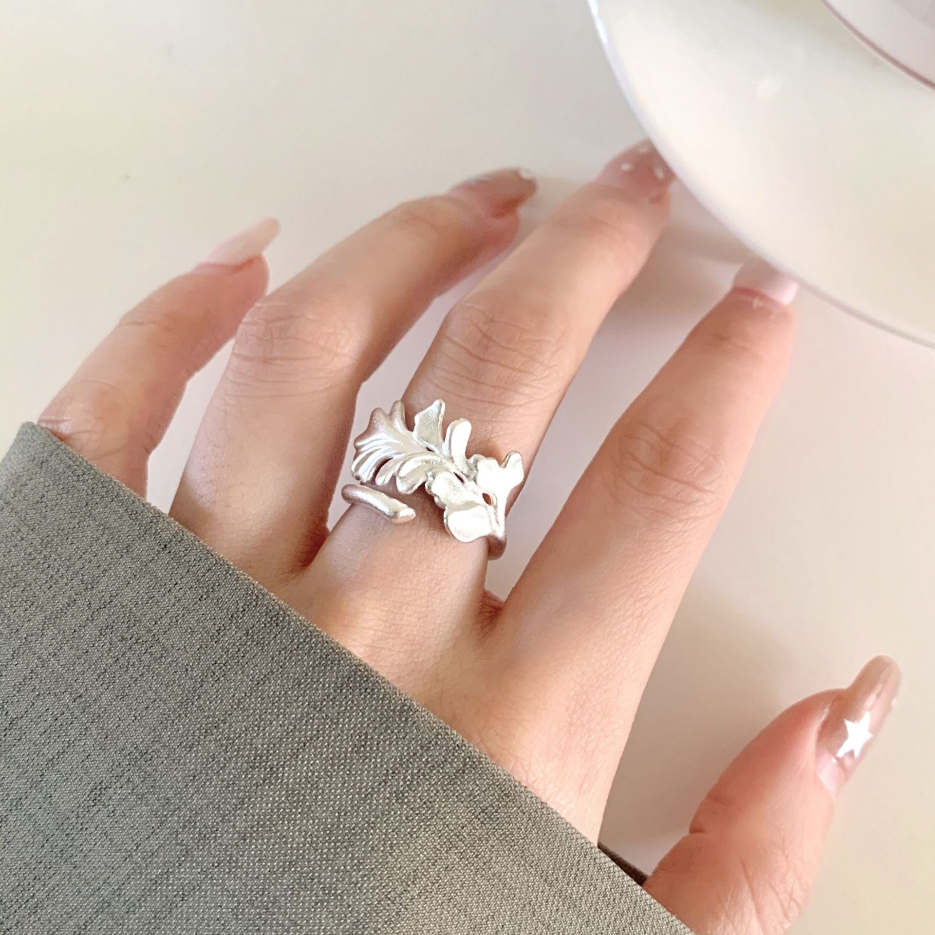 甜美银杏树叶戒指女个性时尚百搭波纹开口指环网红气质简约食指戒