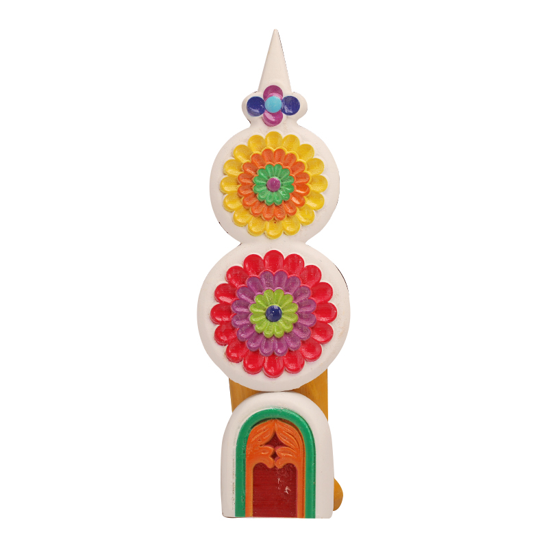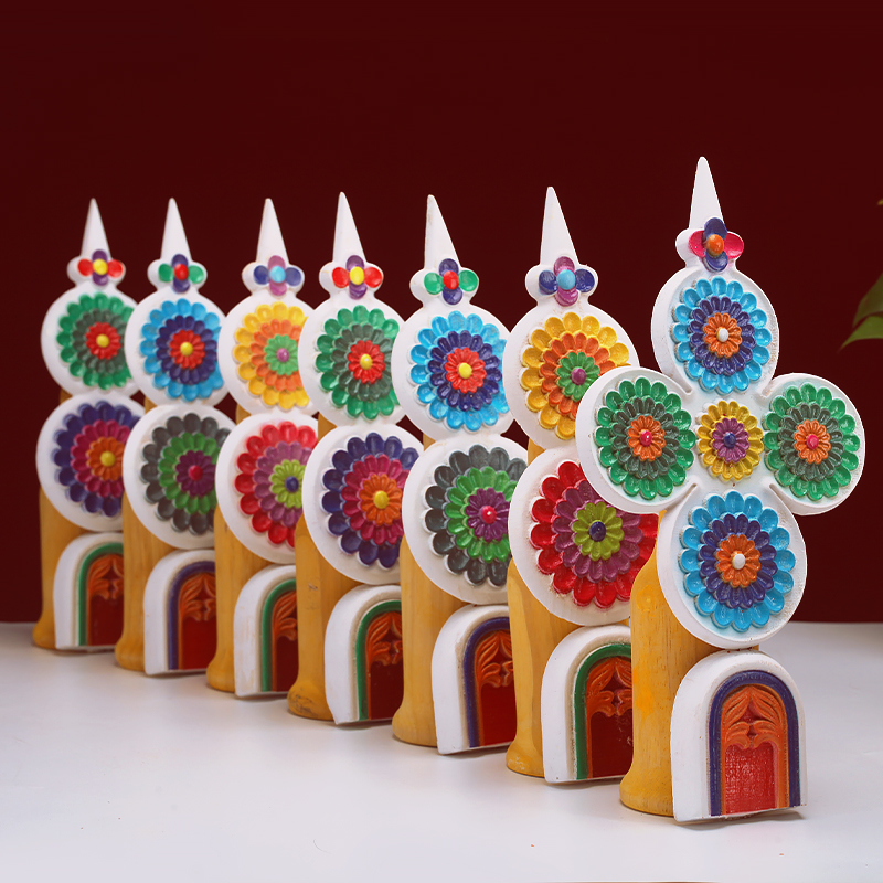 实木彩绘三根本朵玛食子花藏式佛堂上师空行本尊家用八供摆件蓝色