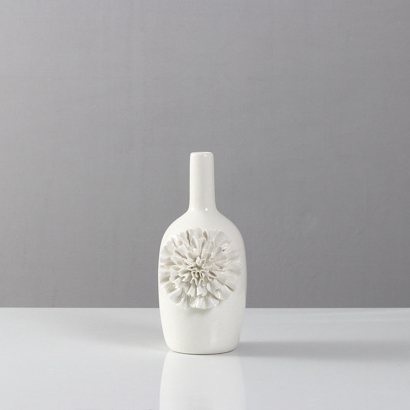 白色欧式陶瓷客厅落地电视柜工艺摆件现代简约创意家居装饰雕花瓶