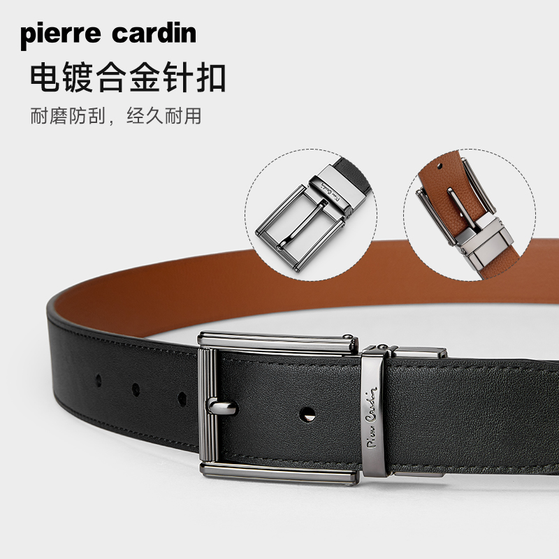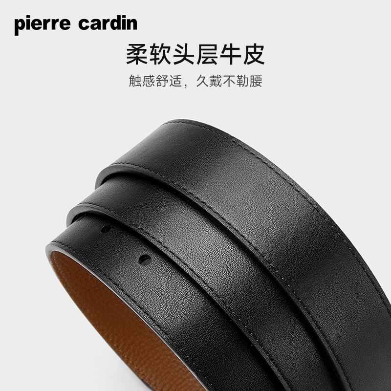 皮尔卡丹男士针扣皮带商务休闲真皮腰带纯牛皮高档百搭旋转扣裤带